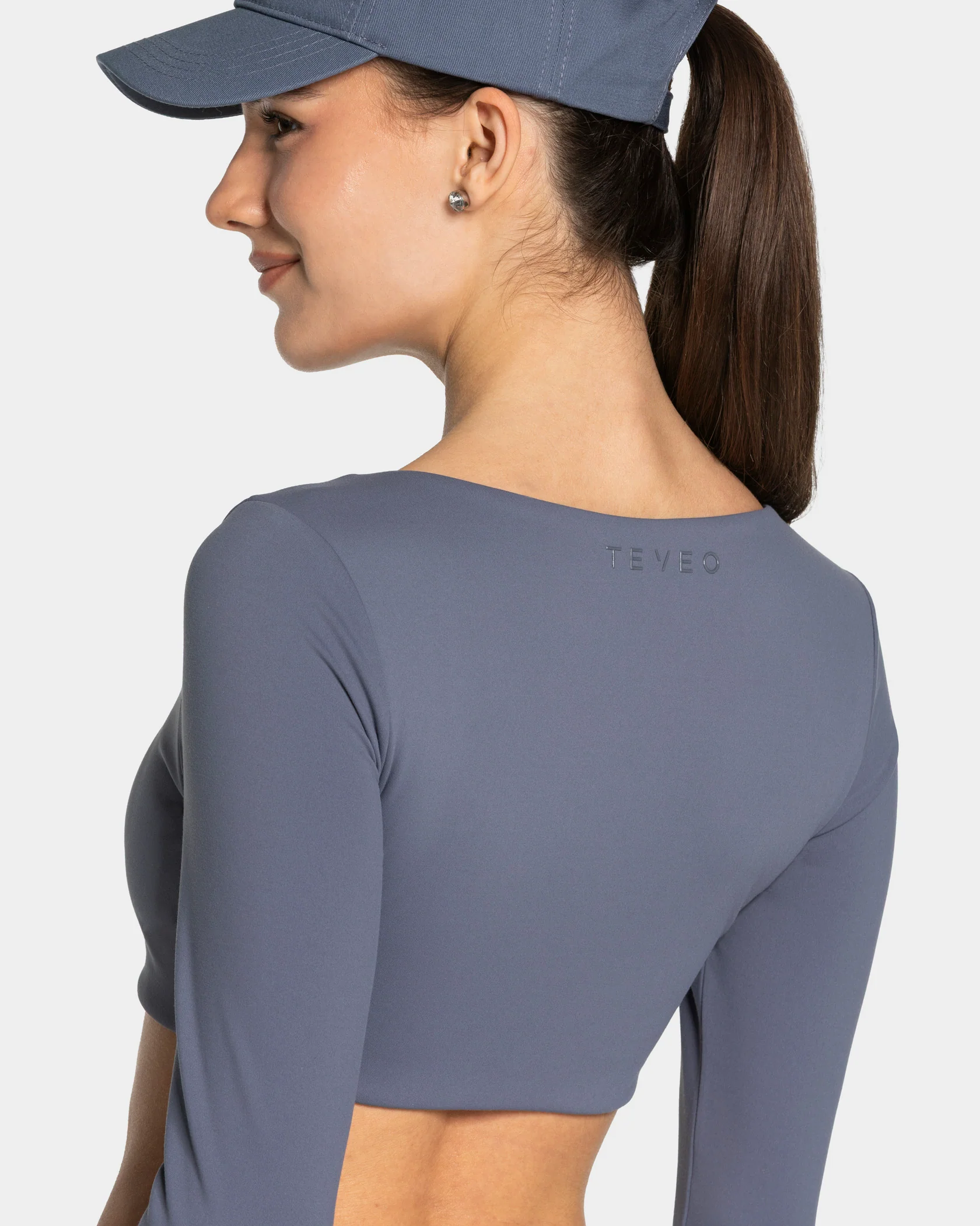 Beim Training wie im Alltag: Das Cropped Longsleeve in Titan ist dein neues Must-have für den Kleiderschrank. Dein neues Essential überzeugt mit einem minimalistischen Cropped Design mit Square Neck sowie dem integrierten BH mit herausnehmbaren Pads und elastischem Bund. Der Gummi am Saumabschluss sorgt gleichzeitig dafür, dass dein Cropped Longsleeve nicht hochrutscht. Das superweiche und atmungsaktive Material schmiegt sich mühelos an deinen Körper an und sorgt für deinen persönlichen Wohlfühlmoment, während das glänzende TEVEO-Logo auf der Rückseite das Design abrundet.