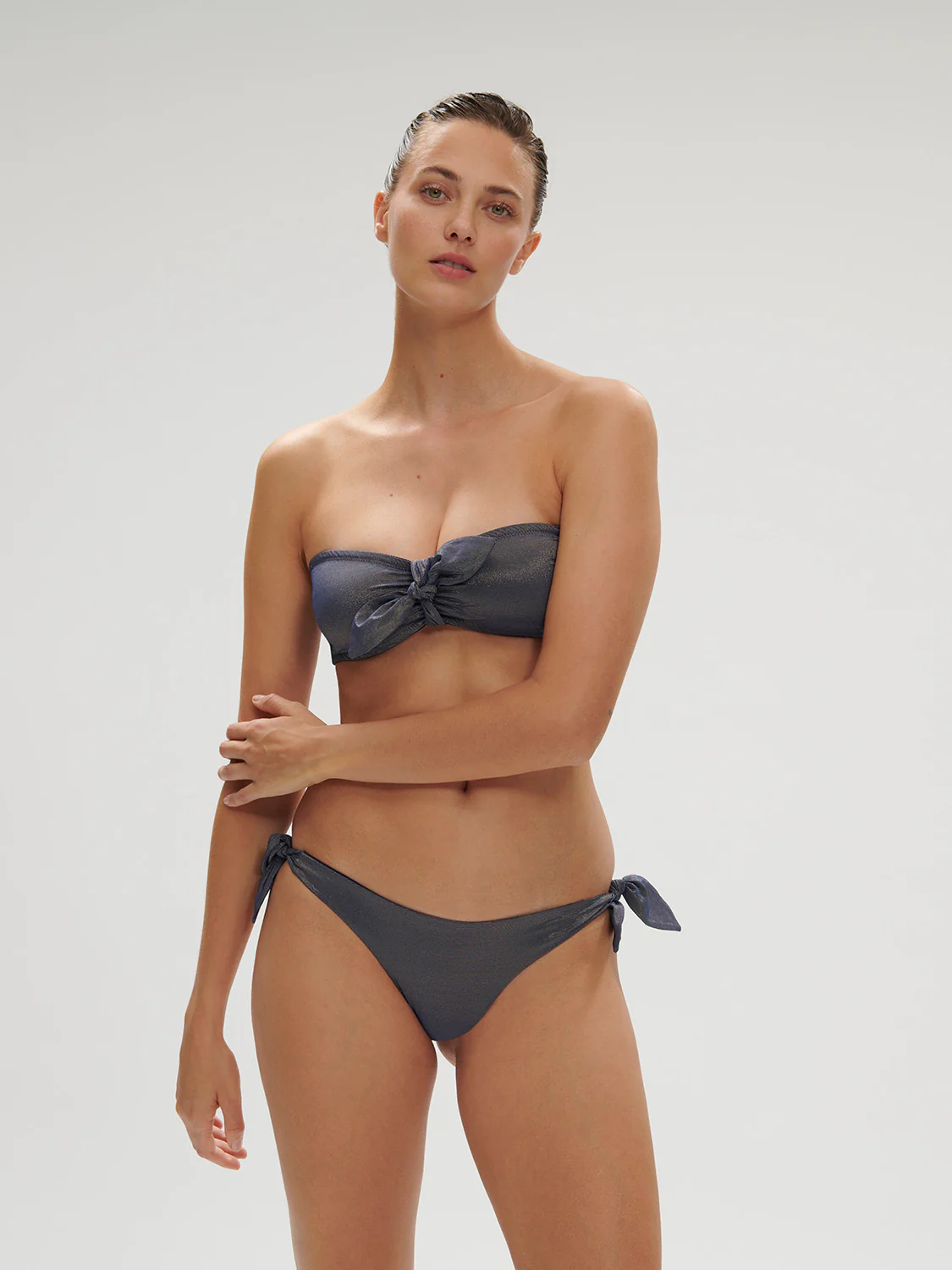 Haut de maillot de bain sans armatures, en matière lurex. • Forme bandeau.• Sans coques.• Baleines côtés pour une meilleure application.• Antidérapant pour un meilleur maintien sans bretelles.• Bretelles amovibles réglables et multi-positions : classiques ou croisées.• Doublé pour plus d’opacité.• Chaîne et trame français. Référence : 1EEB32.549
