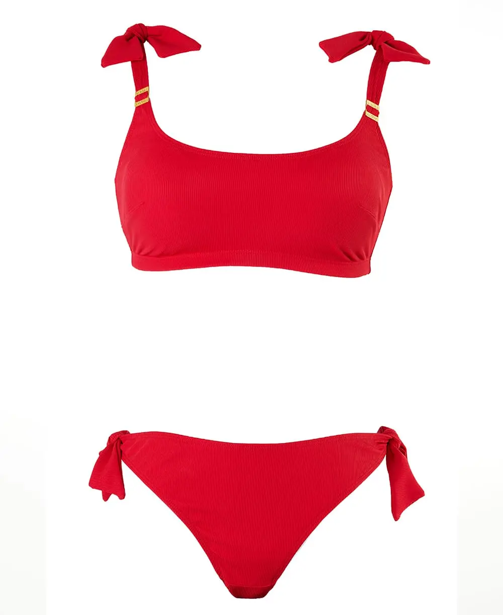 Le bikini de grossesse Porto Vecchio Rouge allie tendance et confort grâce à sa matière texturée à fines côtes et ses coques intégrées.