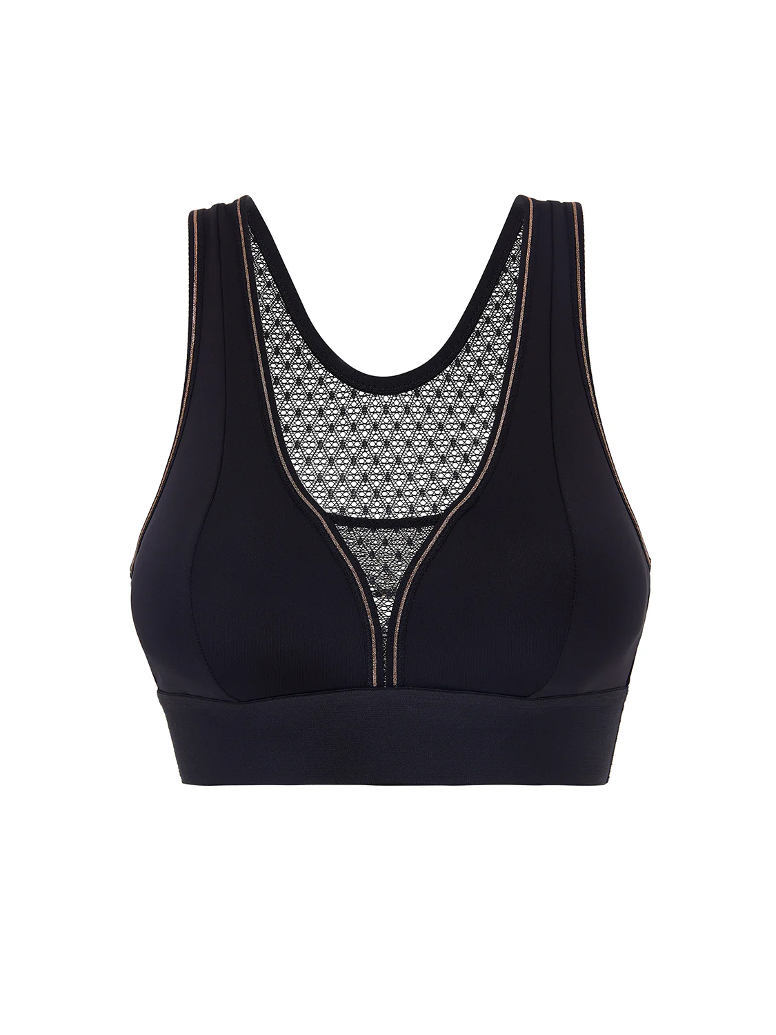 Ligne sport qui conjugue style et technicité.Un look féminin sans faire de concession sur le maintien ! Brassière de sport en maille et dentelle sans armatures. • Confort optimal.• Maintien medium. • Maille nerveuse et respirante. • Coques amovibles.• Large élastique sous poitrine en maille absorbante.• Larges bretelles.• Dos nageur tout en dentelle pour plus […]