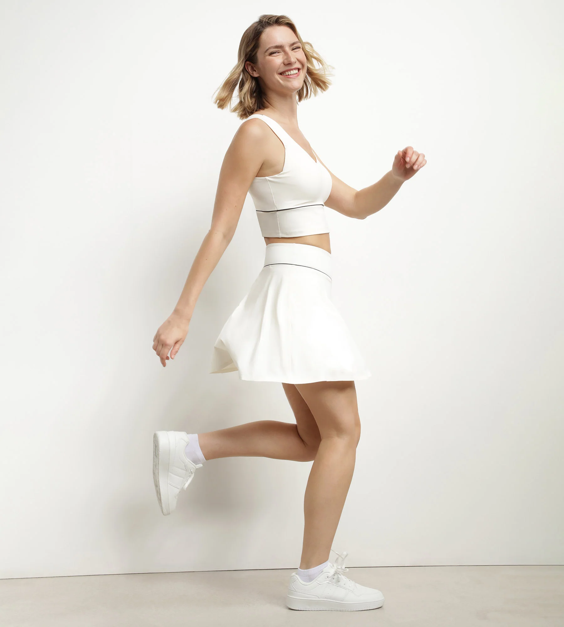 Stylé et performant, misez sur le crop top en microfibre Écru Dim Move avec brassière intégrée !