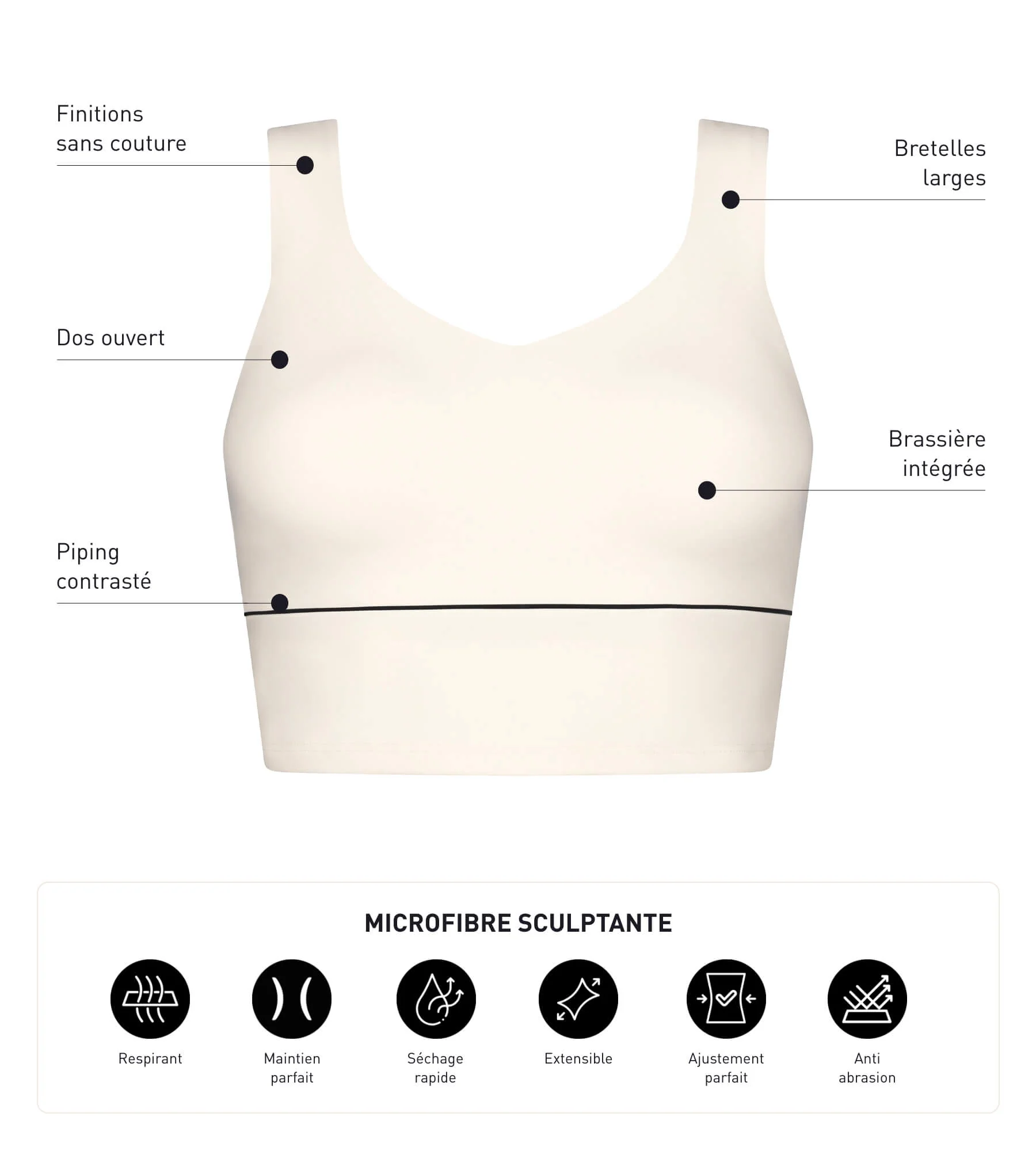 - Le maintien optimal grâce à la brassière intégrée