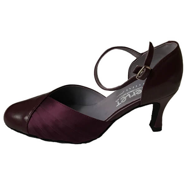 Bonnes affaires : 20% de remise Chaussure de danse de la collection automne Merlet à bout fermé, avec semelle intérieure rembourrée Matière : cuir et satin Couleur : lie-de-vin Hauteur talon : 6,5 cm Dernières pointures : 37.5, 38.5
