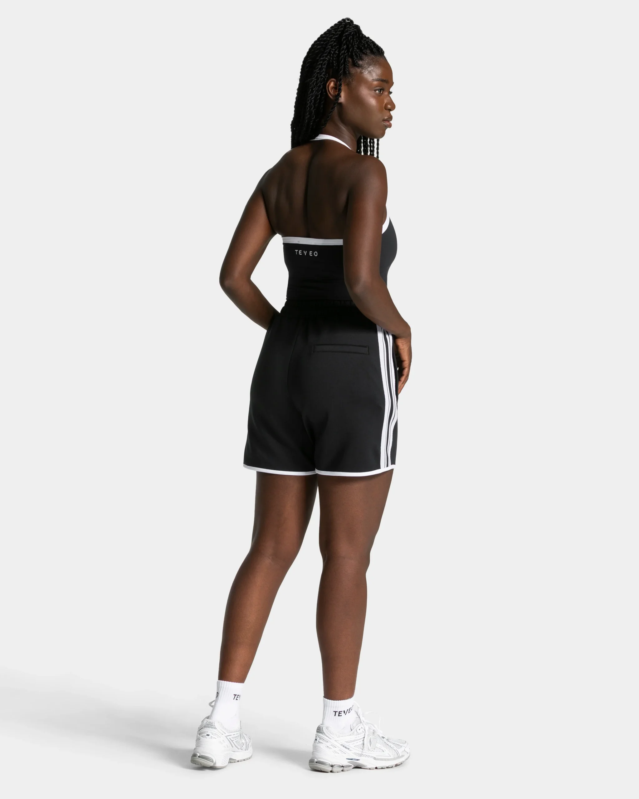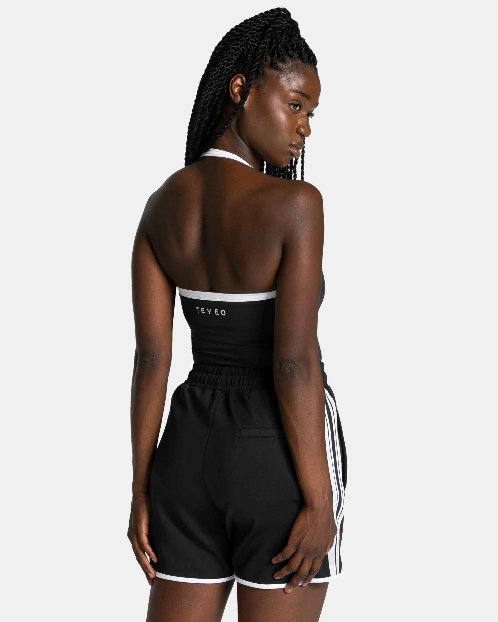Der figurbetonte Fit des Club Neckholder Tops in Schwarz trifft auf präzise Details – clean, sportlich, zeitlos elegant. Der kontrastierte Neckholder-Träger und das gestickte TEVEO Kontrast-Logo am Rücken setzen dezente, hochwertige Akzente. Der integrierte BH mit herausnehmbaren Pads und innenliegendem Elastikband bietet sicheren Halt und Medium Support für jede Bewegung. Für alle, die ihren eigenen Standard setzen.