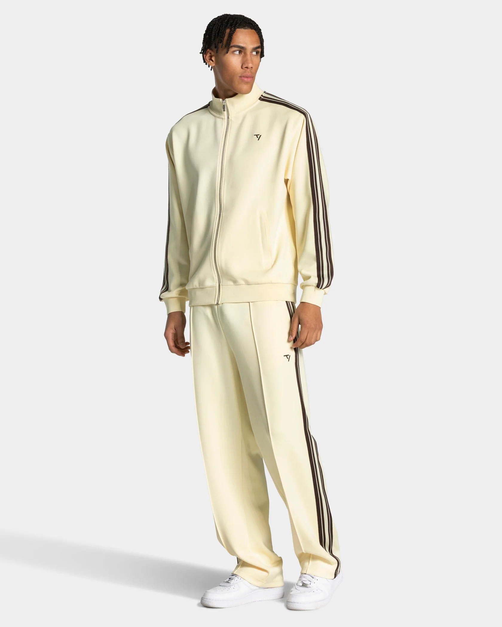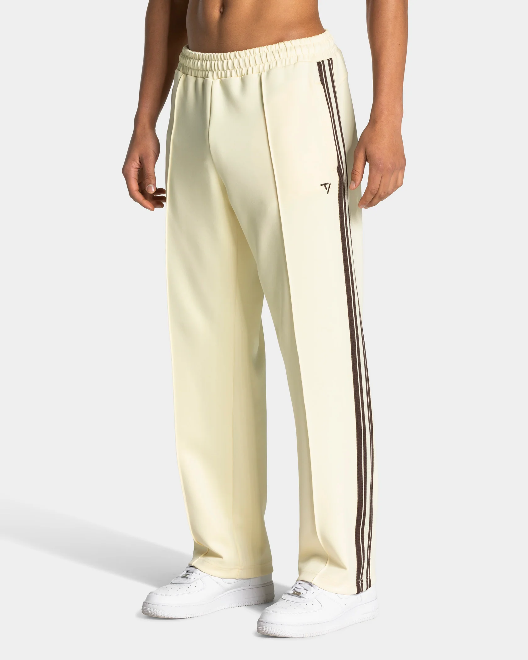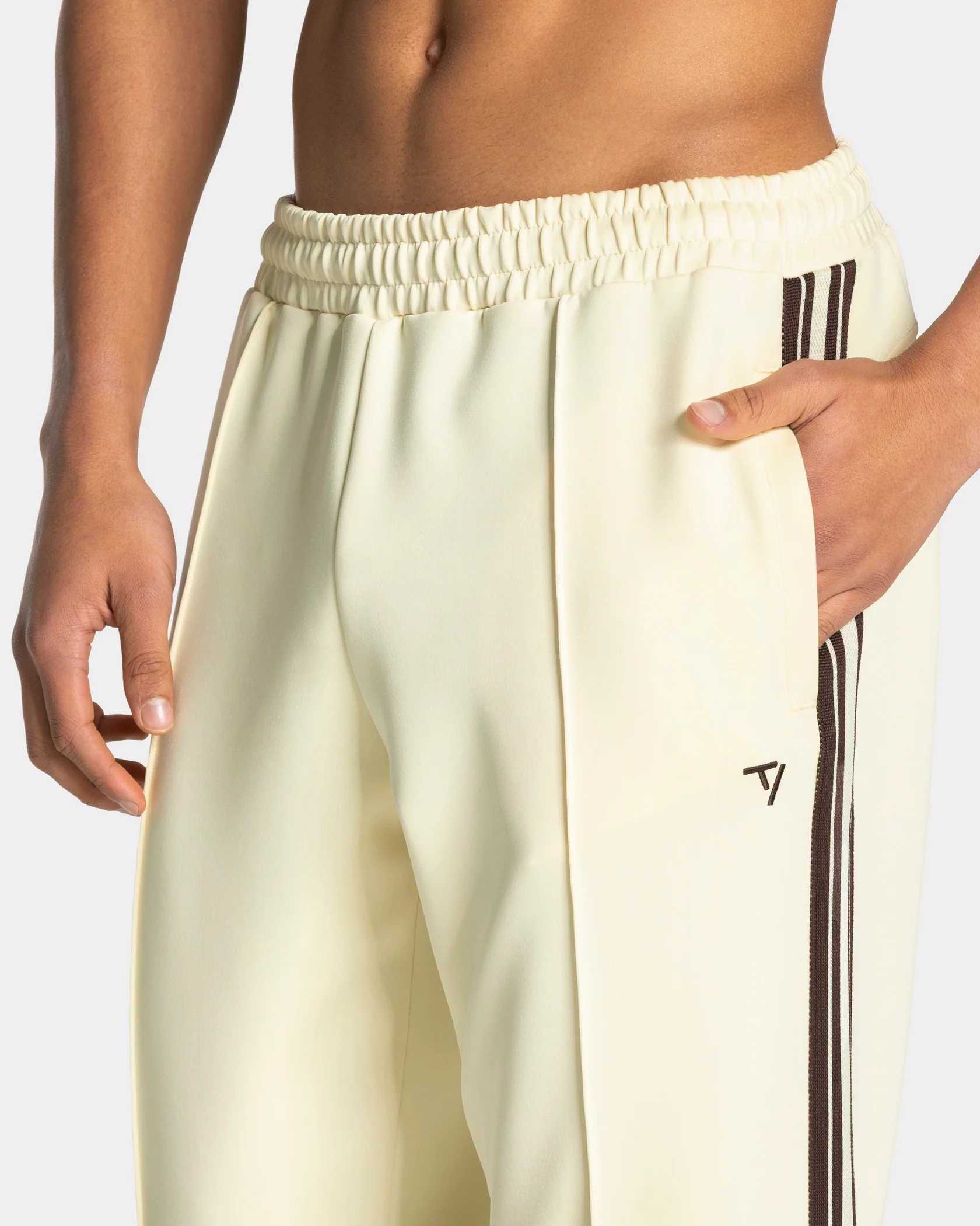 Der Club Straight Leg Jogger in Butter Yellow vereint klassische Athletik mit Street-Style. Seitliche Kontrast-Streifen und eine markante Biese sorgen in Kombination mit dem geraden Schnitt für einen cleanen Look. Der elastische Bund mit Kordelzug ermöglicht individuelle Anpassung, Reißverschlusstaschen mit Staydown Puller verstauen deine Essentials. Das gestickte TV Kontrast-Logo und eine angedeutete Leistentasche vervollständigen den Jogger.