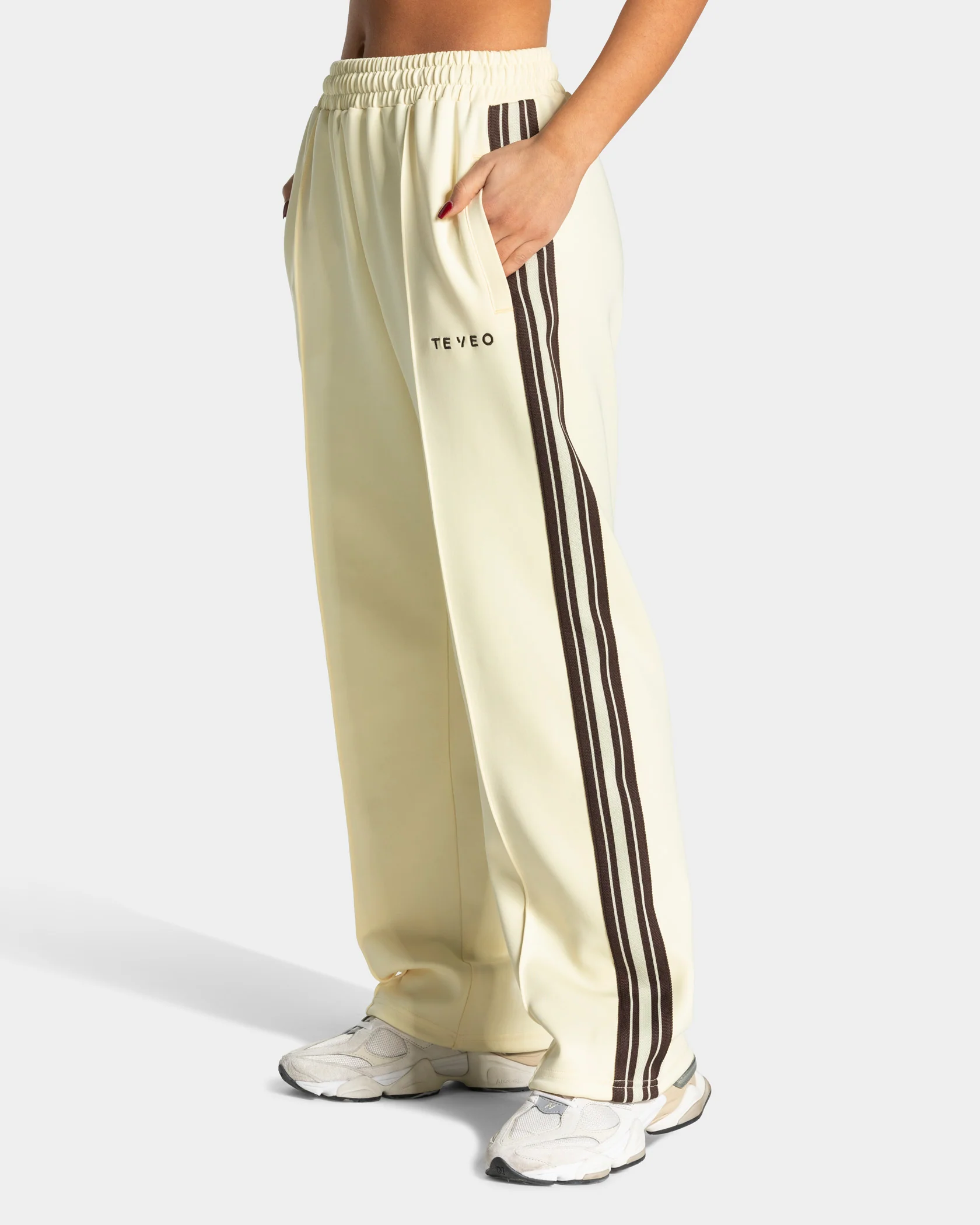 Der Club Straight Leg Jogger in Butter Yellow kombiniert einen geraden Schnitt mit markanten Kontrast-Streifen und einer präzisen Biese – ein Look mit Wiedererkennungswert. Der Gummizug am Beinende sowie der elastische Bund mit Kordelzug ermöglichen individuelle Anpassung, Reißverschlusstaschen mit Staydown Puller verstauen deine Essentials. Das gestickte TEVEO Kontrast-Logo und eine angedeutete Leistentasche vervollständigen den Look. Für alle, die ihren eigenen Standard setzen.