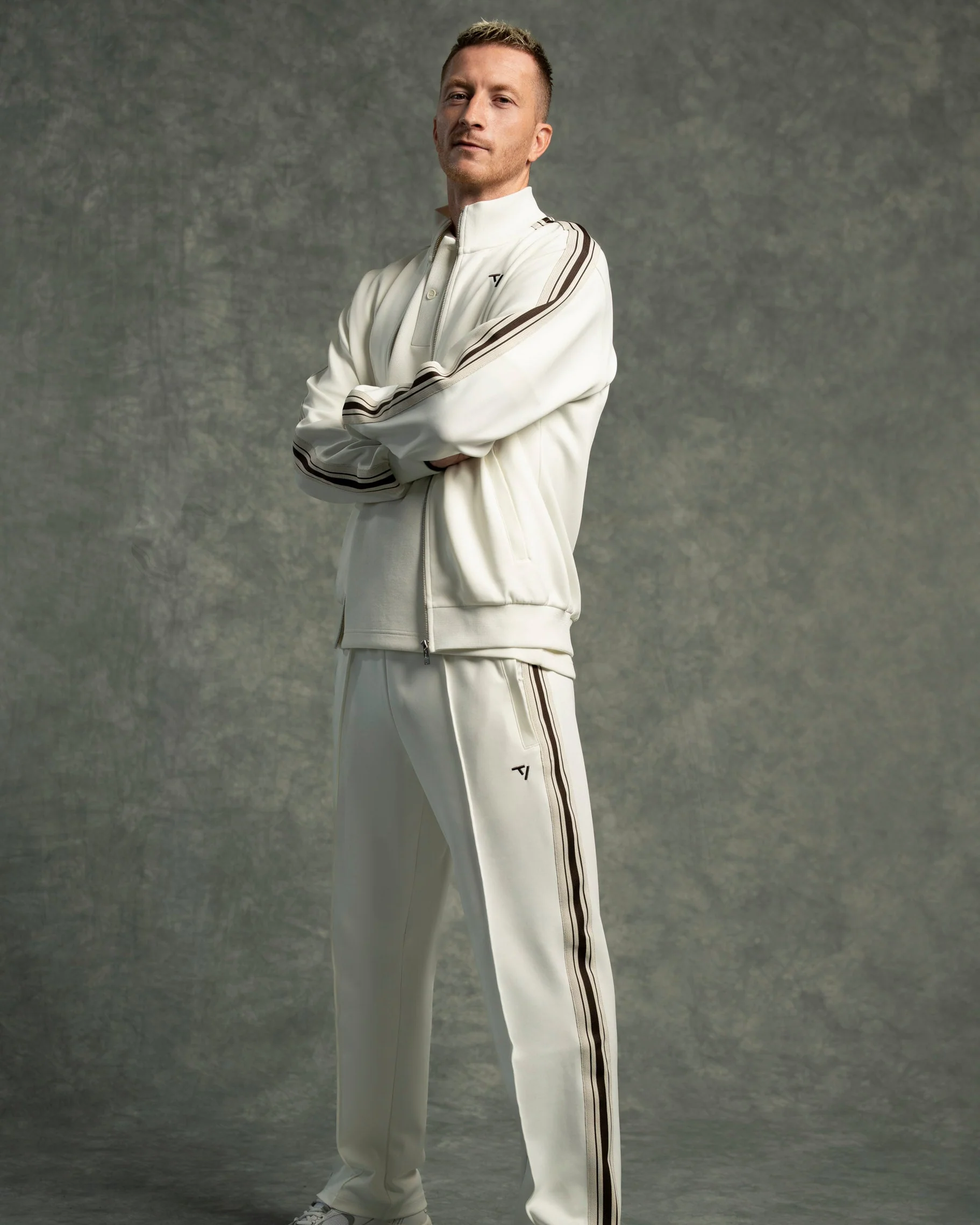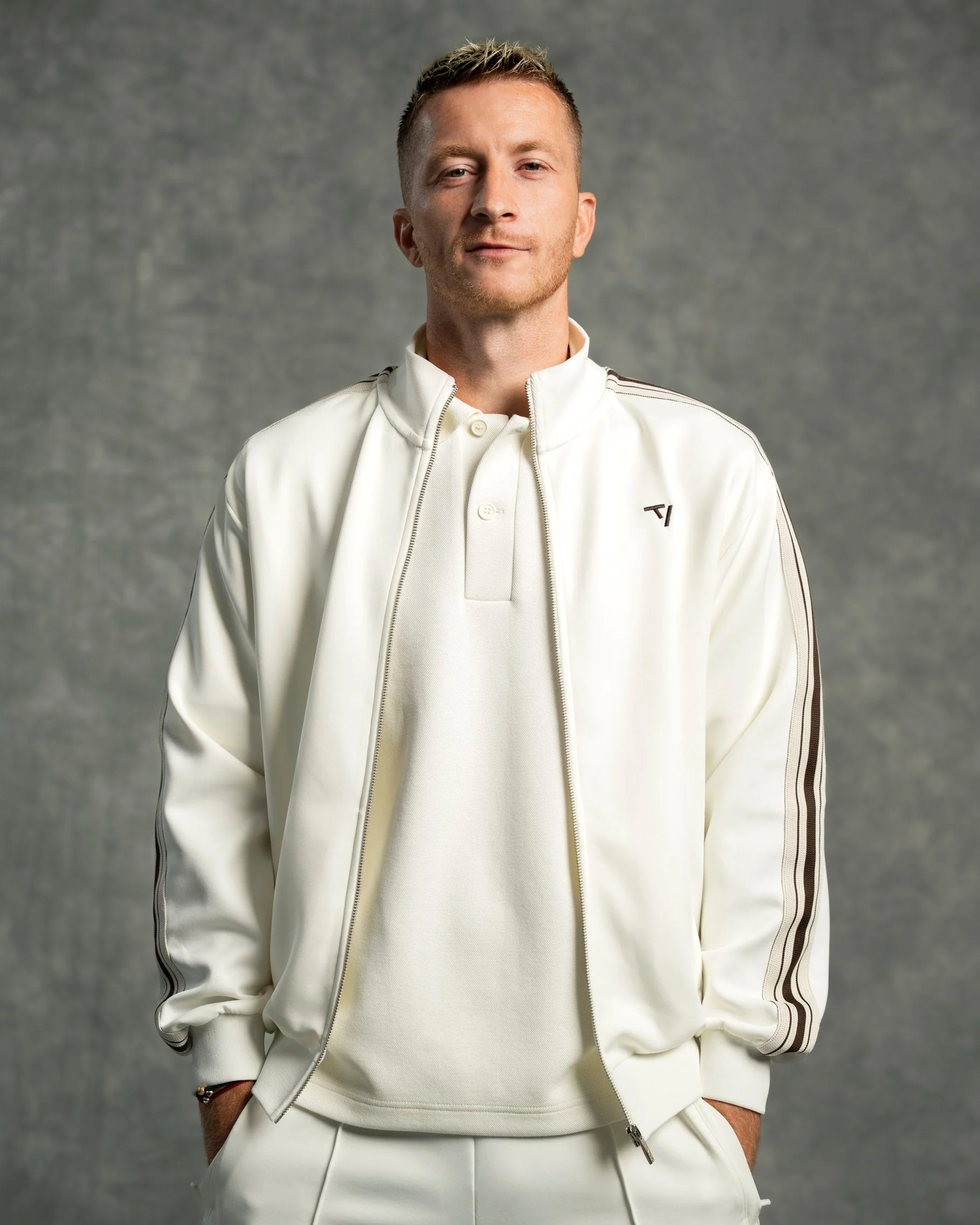 Der Regular Fit der Club Zip Jacket in Off White trifft auf klassische Details: gestrickter Stehkragen, markante Kontrast-Streifen an Ärmeln und Schultern. Tonale Reißverschlusstaschen mit Staydown Puller verstauen deine Essentials sicher, während das gestickte TV Kontrast-Logo auf der Brust und das innenliegende TEVEO Logo-Necktape den Look komplettieren.