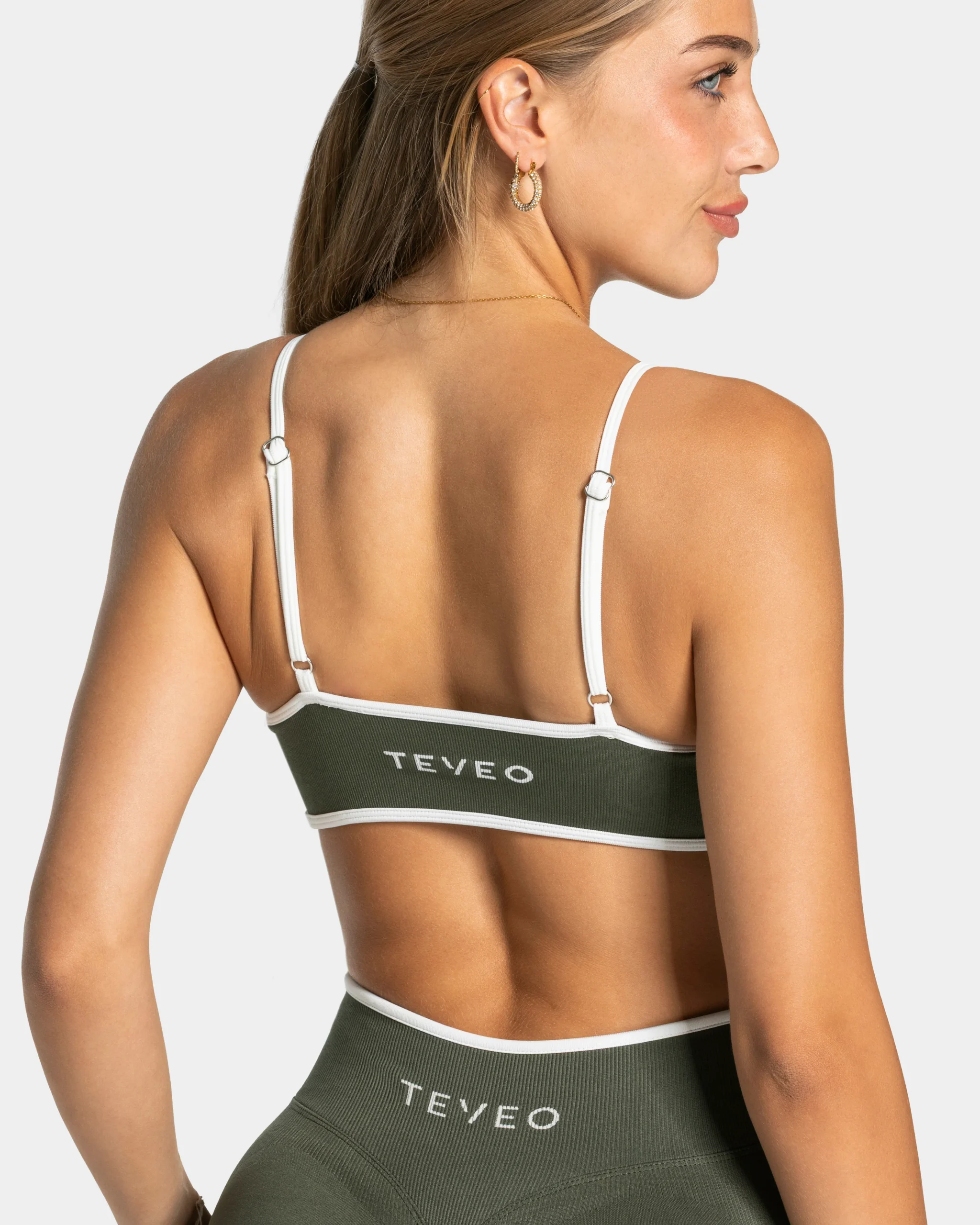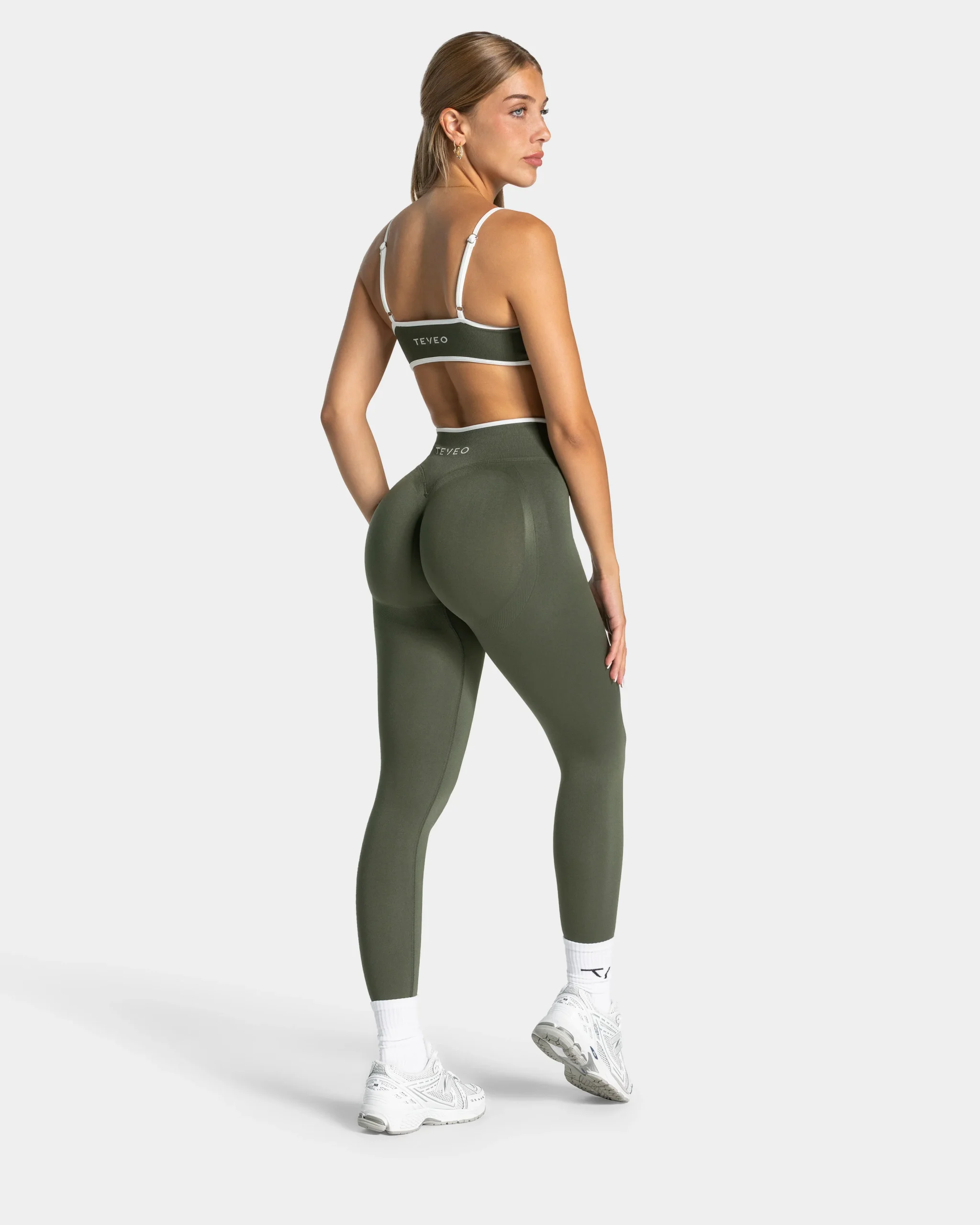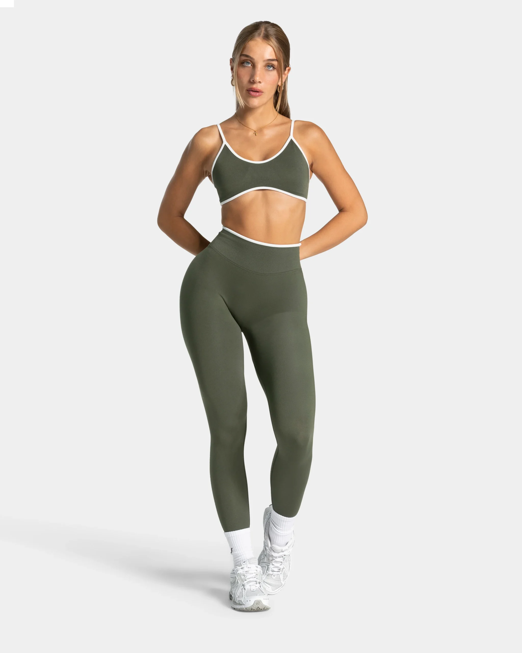 Der Contrastline BH ist in mehreren Farben erhältlich und lässt sich optimal mit der Contrastline Sculpt Scrunch Short oder Leggings sowie dem Contrastline Jogger kombinieren. Hier findest du noch einmal alle Vorteile des Contrastline BHs in Khaki: