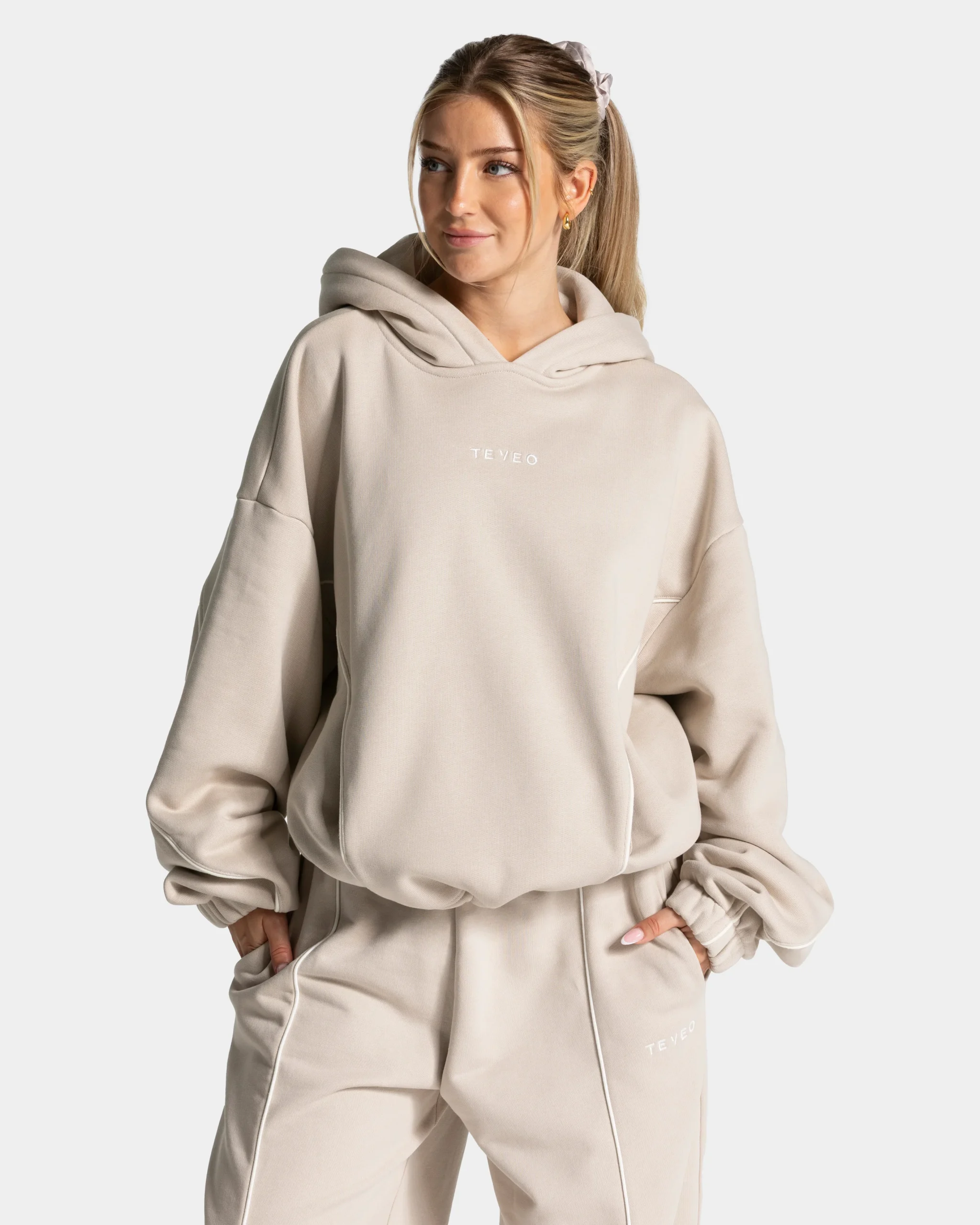 Der Contrastline Hooded Sweater in Cream vereint Komfort, Style und Funktionalität in einem modernen Design. Der Sweater überzeugt sowohl mit den markanten weißen Kontrastnähten als auch den versteckten Taschen. Mit seinem Oversized Fit und integriertem Gummizug zum Croppen sowie der festen Kapuze ist er dein perfekter Begleiter für kühle Tage, dein Warm-up oder zum Wohlfühlen.