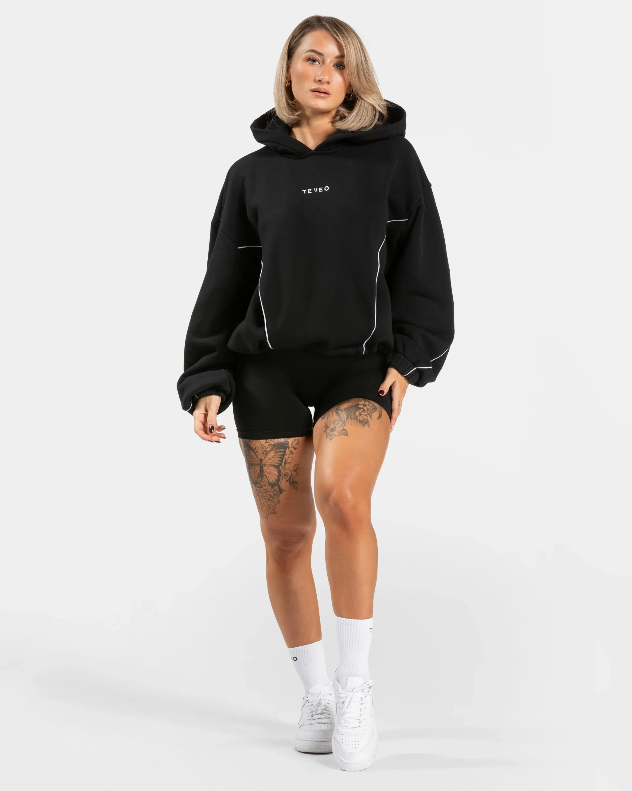 Der Contrastline Hooded Sweater ist in mehreren Farben erhältlich und lässt sich perfekt mit der Contrastline Wide Leg Jogger sowie der Contrastline Sculpt Scrunch Leggings und Shorts kombinieren. Hier findest du noch einmal alle Vorteile des Contrastline Hooded Sweaters in Schwarz:
