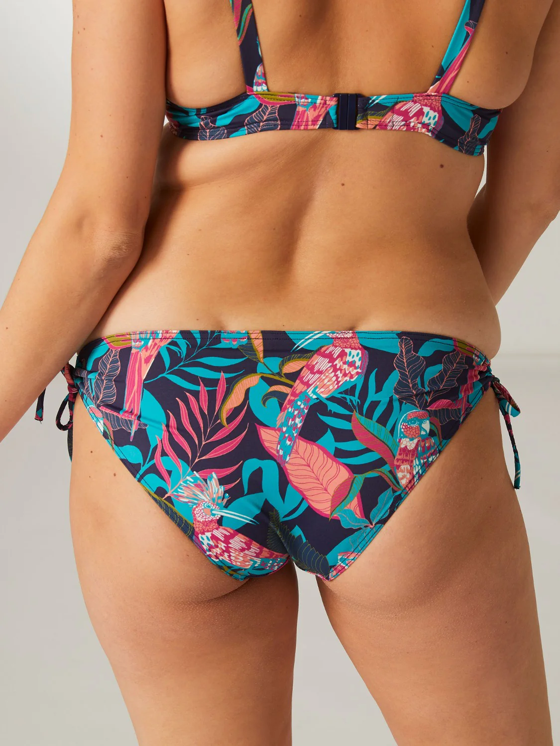 Un imprimé tropical qui nous transporte au cœur d’une nature exotique pour un esprit plein soleil. • Culotte de bain coupe classique.• Liens à nouer sur les côtés. Référence : 1DPB70.109