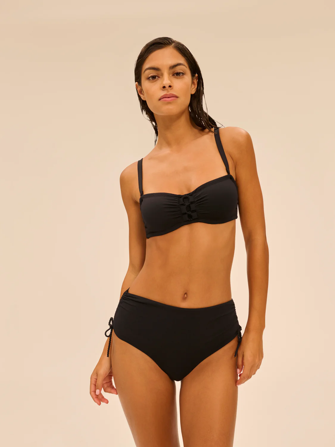 • Bas de maillot de bain forme culotte haute.