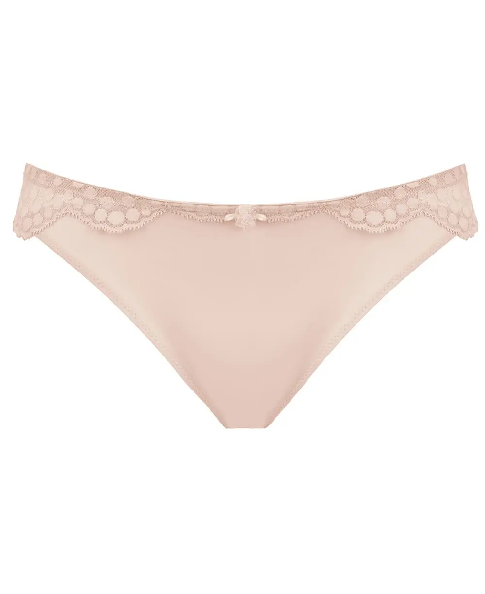 La culotte de grossesse LOLLYPOP nude allie confort absolu et élégance grâce à sa microfibre douce et sa dentelle à pois délicate.