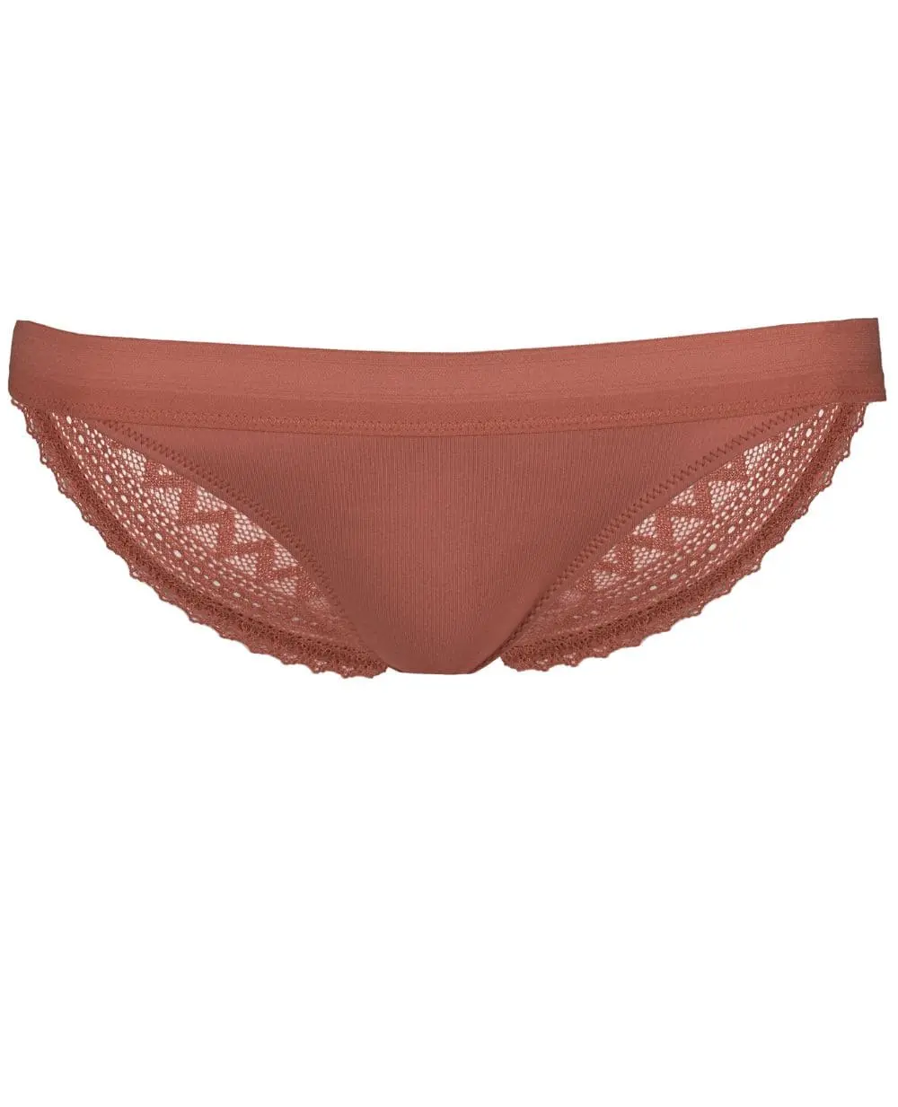La culotte de grossesse Serena terracotta allie confort absolu et élégance grâce à sa dentelle italienne géométrique et sa matière double face innovante.