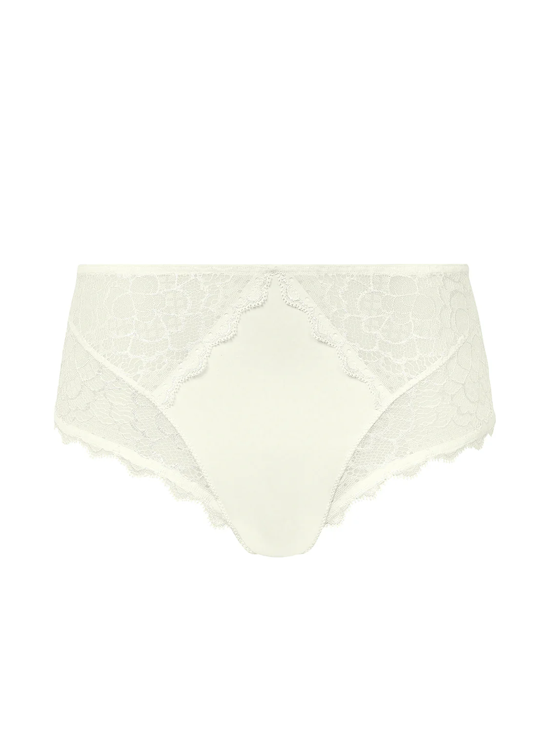 La fraîcheur de la dentelle florale et la douceur de la maille font de Caresse un incontournable. Quotidienne et intemporelle. Culotte taille haute en dentelle et maille. • Devant doublé coton pour plus de confort. Référence : 12A770.030