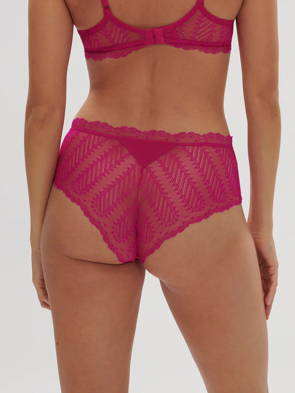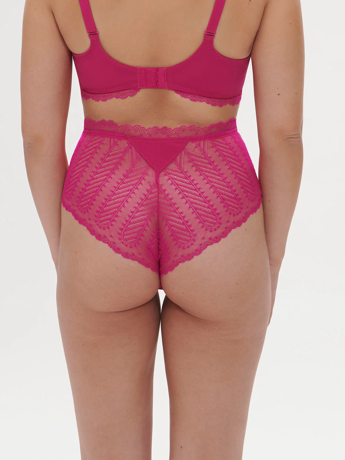 Culotte taille haute en crêpe et dentelle. • Dos travaillé tout en dentelle avec festons sur le galbe des fesses pour un porter invisible sous les vêtements.• Fond 100% coton. Ligne éco-responsable SIMONE CARES :La dentelle de ce produit contient au moins 50% de polyamide recyclé. Référence : 1D2770.466