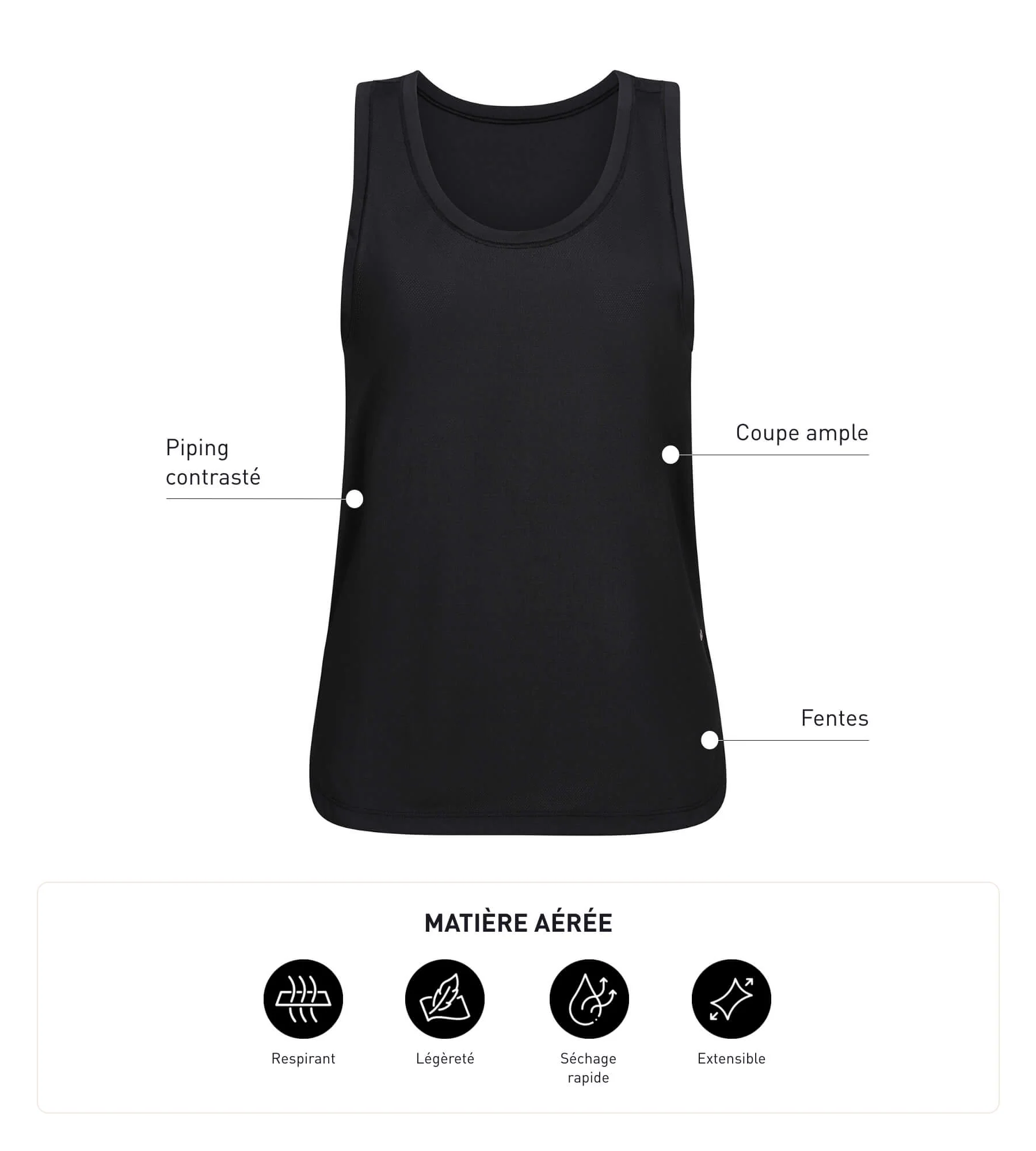 Craquez pour le design athlétique et minimaliste du débardeur long pour femme en viscose noire Dim Move !