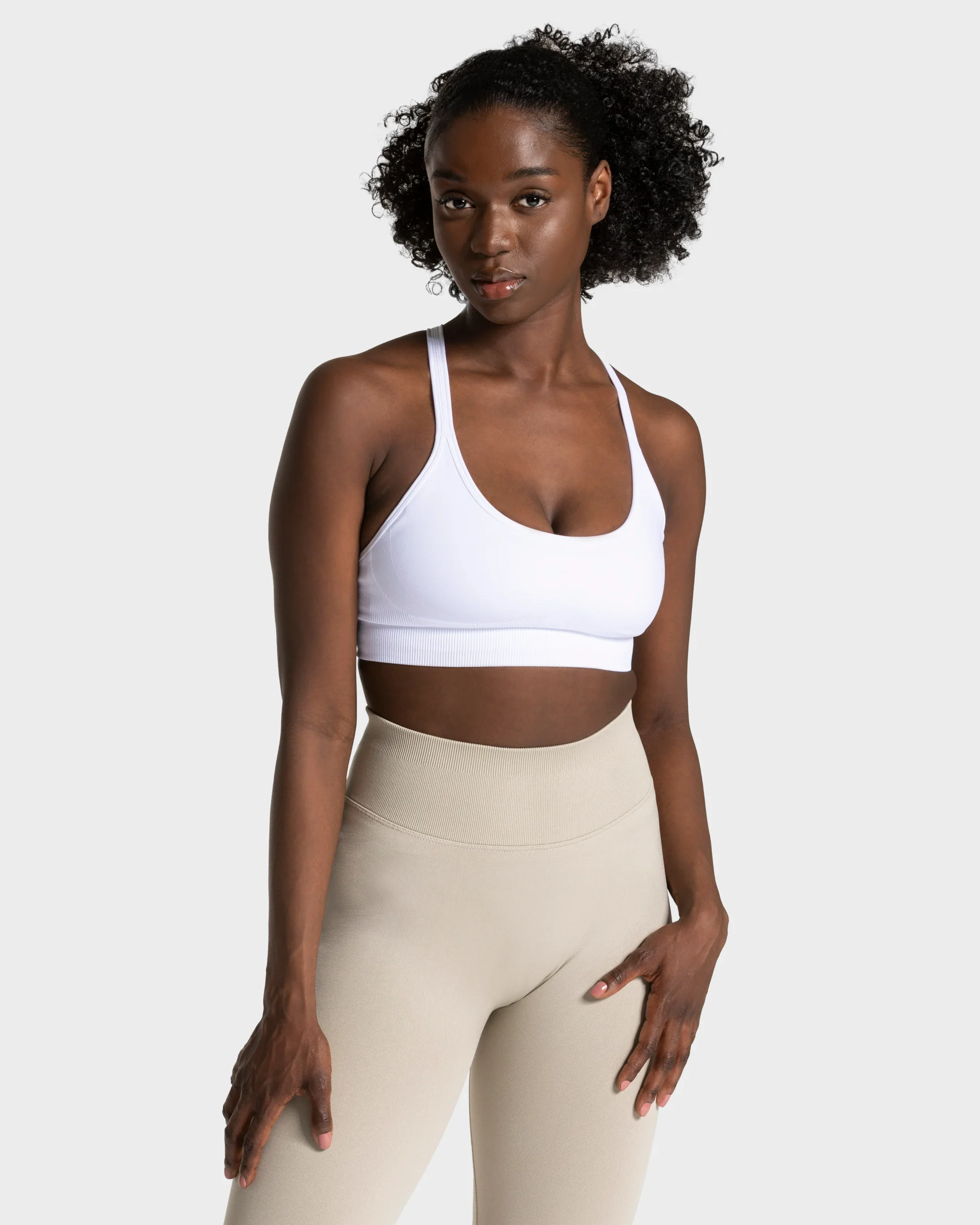 - Racerback mit festen, breiten Trägern