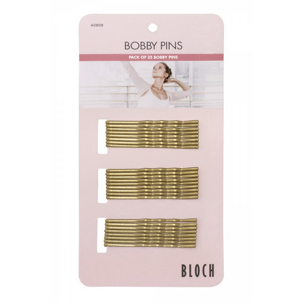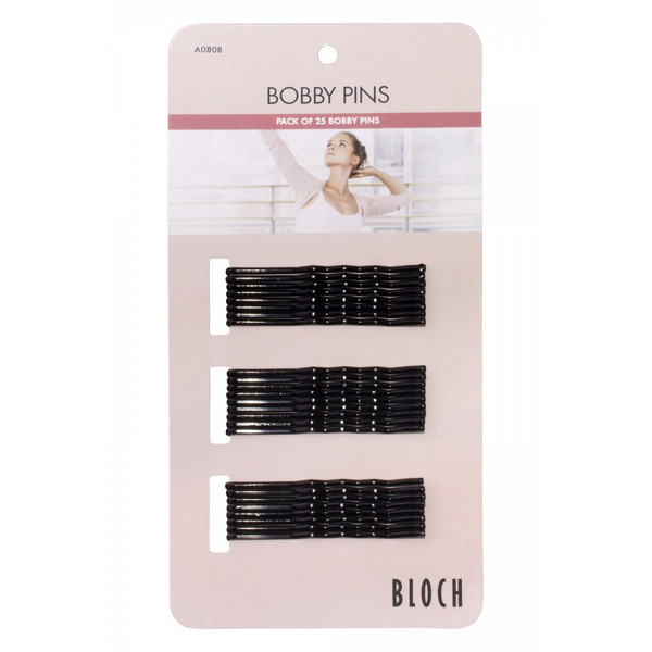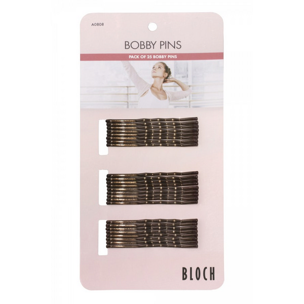 Épingles à cheveux marque Bloch Matière : métal Couleurs : blond, brun, noir Le plaquette contient : 25 épingles à cheveux