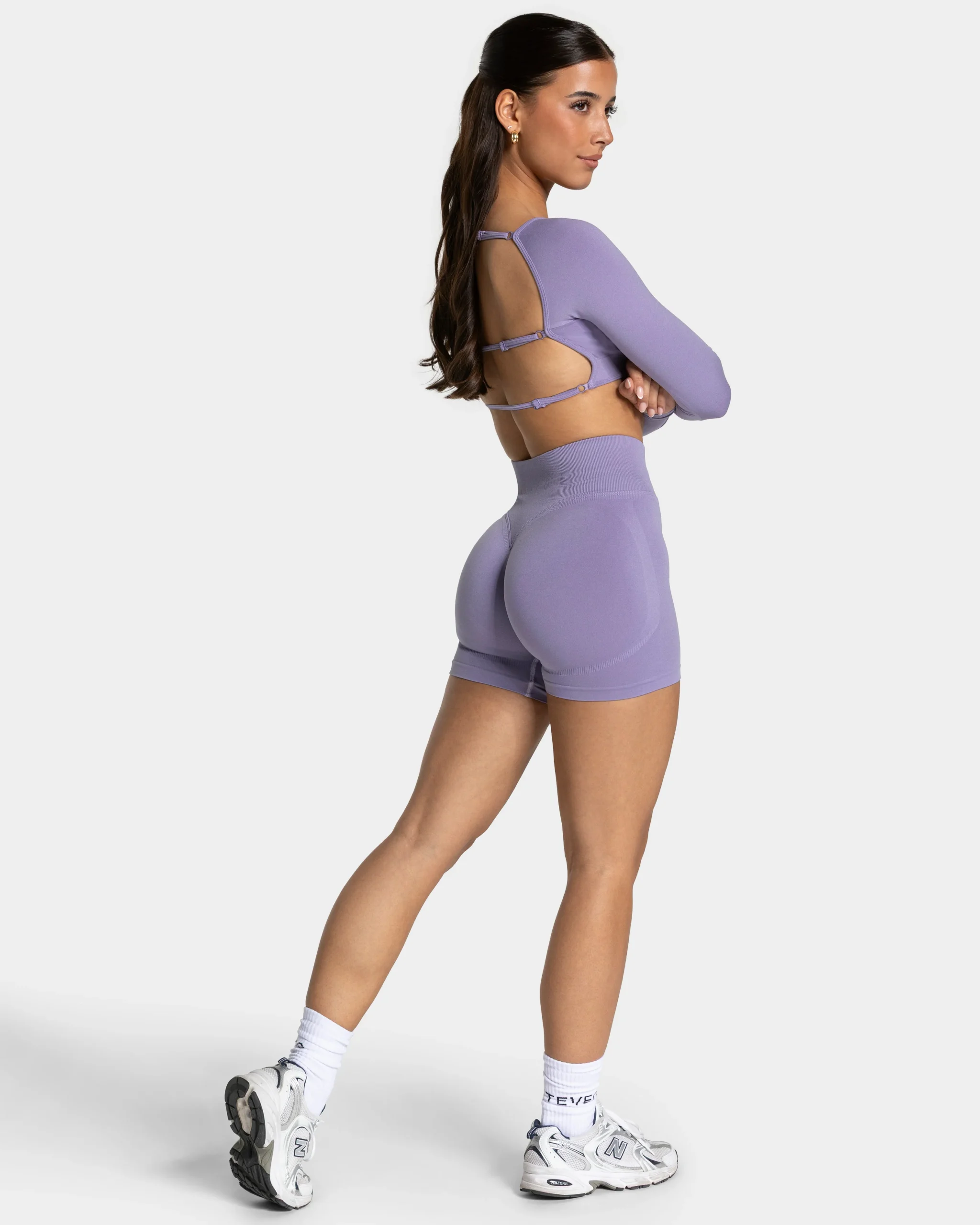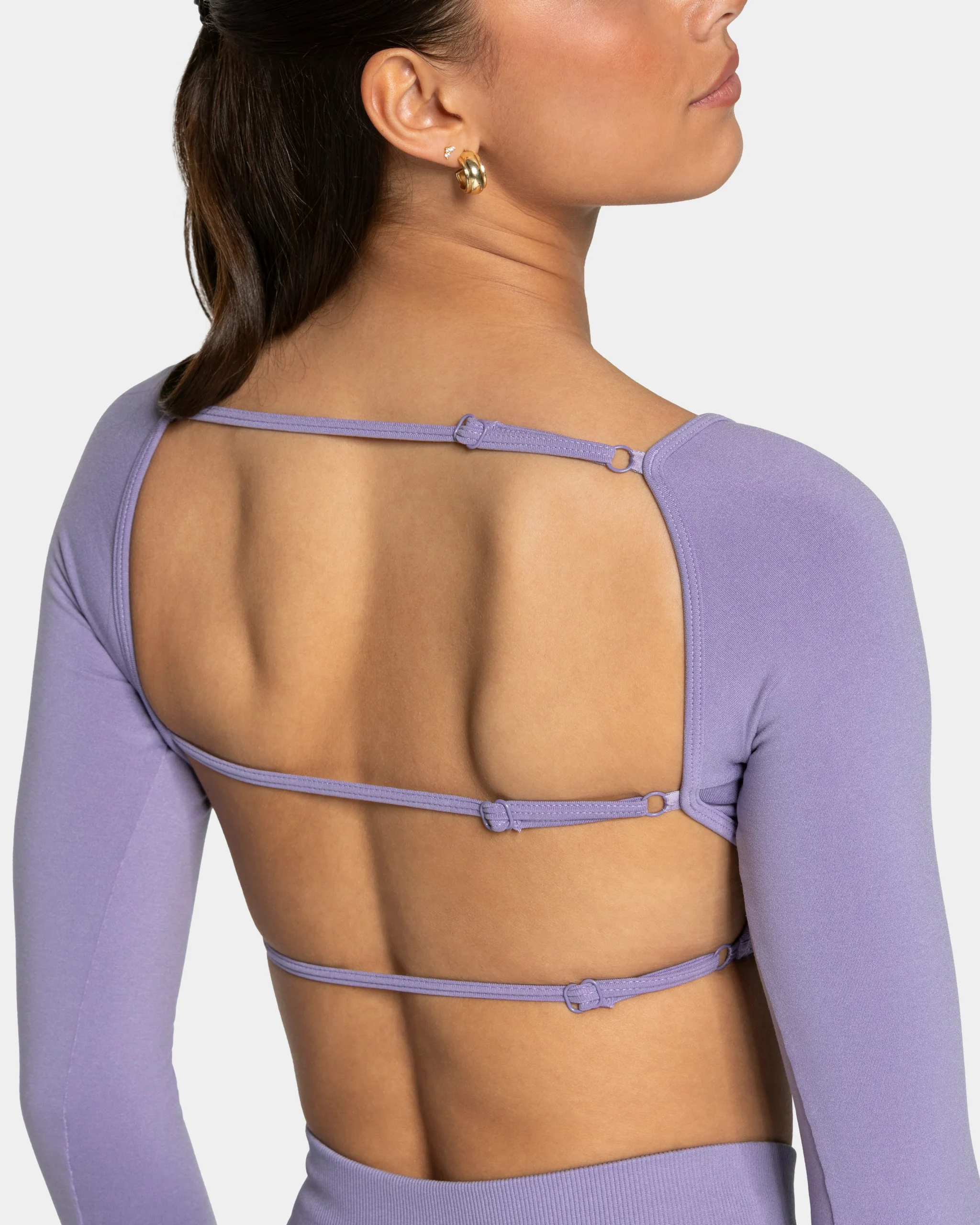 Das Femme Backless Longsleeve in Lavendel ist auch in weiteren Farben erhältlich und lässt sich perfekt mit der Femme Sculpt Scrunch Leggings und Shorts kombinieren. Hier findest du noch einmal alle Vorteile des Longsleeves auf einen Blick:
