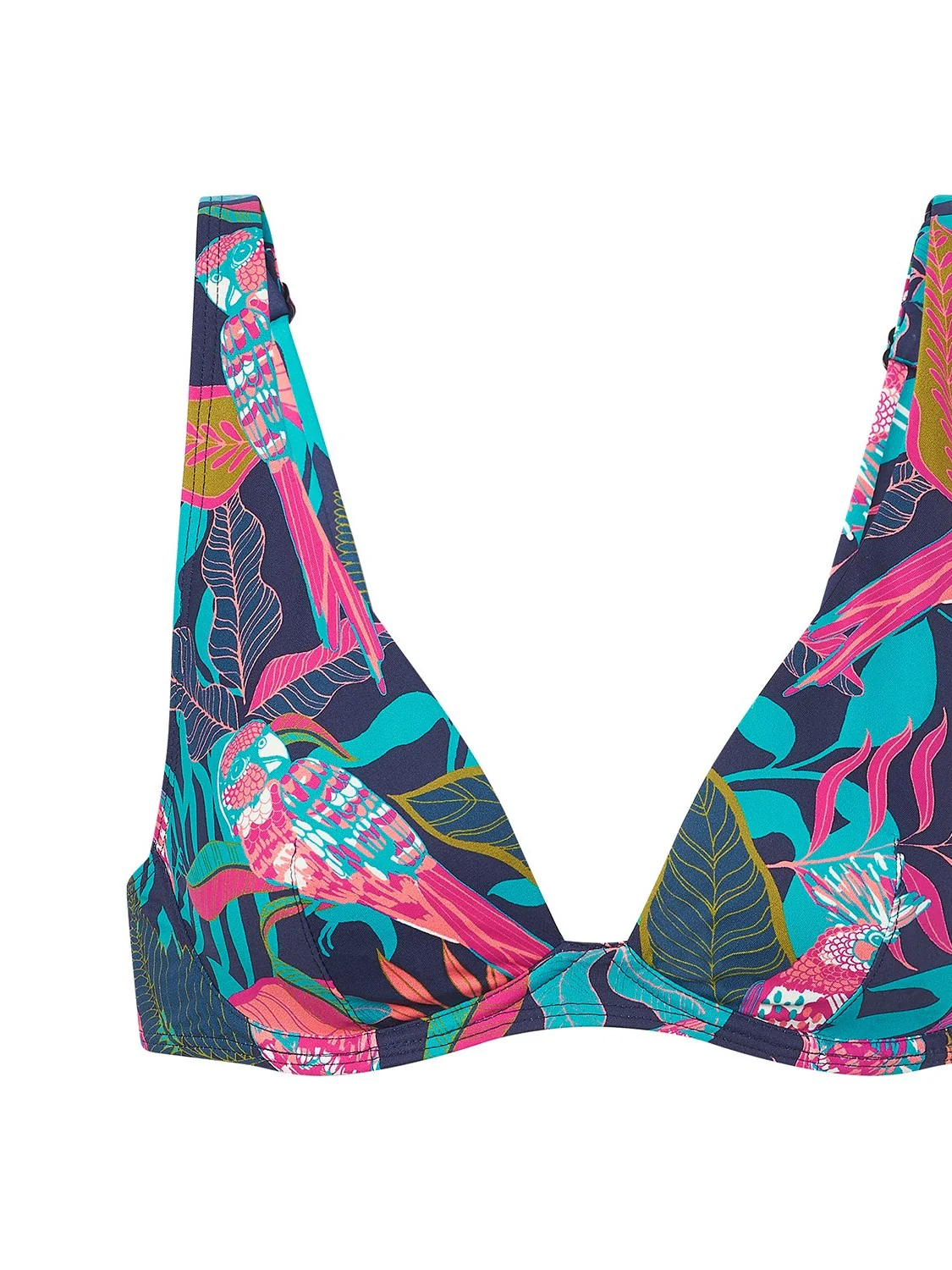 Un imprimé tropical qui nous transporte au cœur d’une nature exotique pour un esprit plein soleil. • Maillot de bain triangle avec armatures.• Décolleté plongeant.• Excellent maintien.• Bretelles réglables.• Sans coques.• Dos doublé en maille gainante pour un meilleur maintien en grandes tailles (bonnets D, E et F). Référence : 1DPB41.109