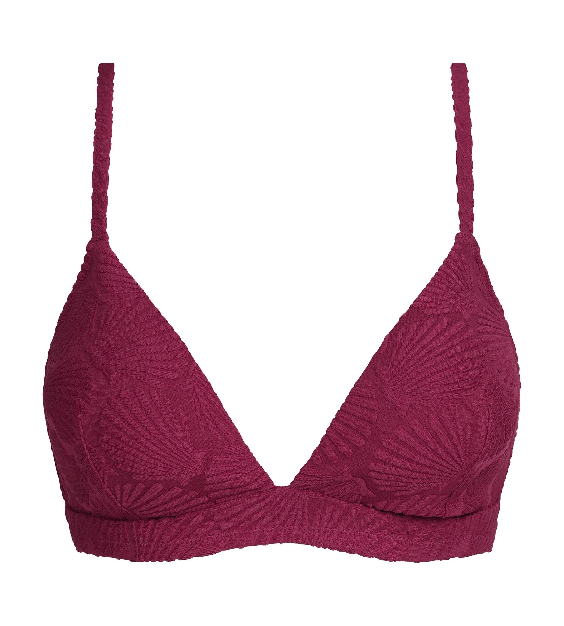 Laissez-vous séduire par la coupe légère et le charme solaire du haut de maillot de bain triangle Dim Swimwear en jacquard rouge à motif coquillage.
