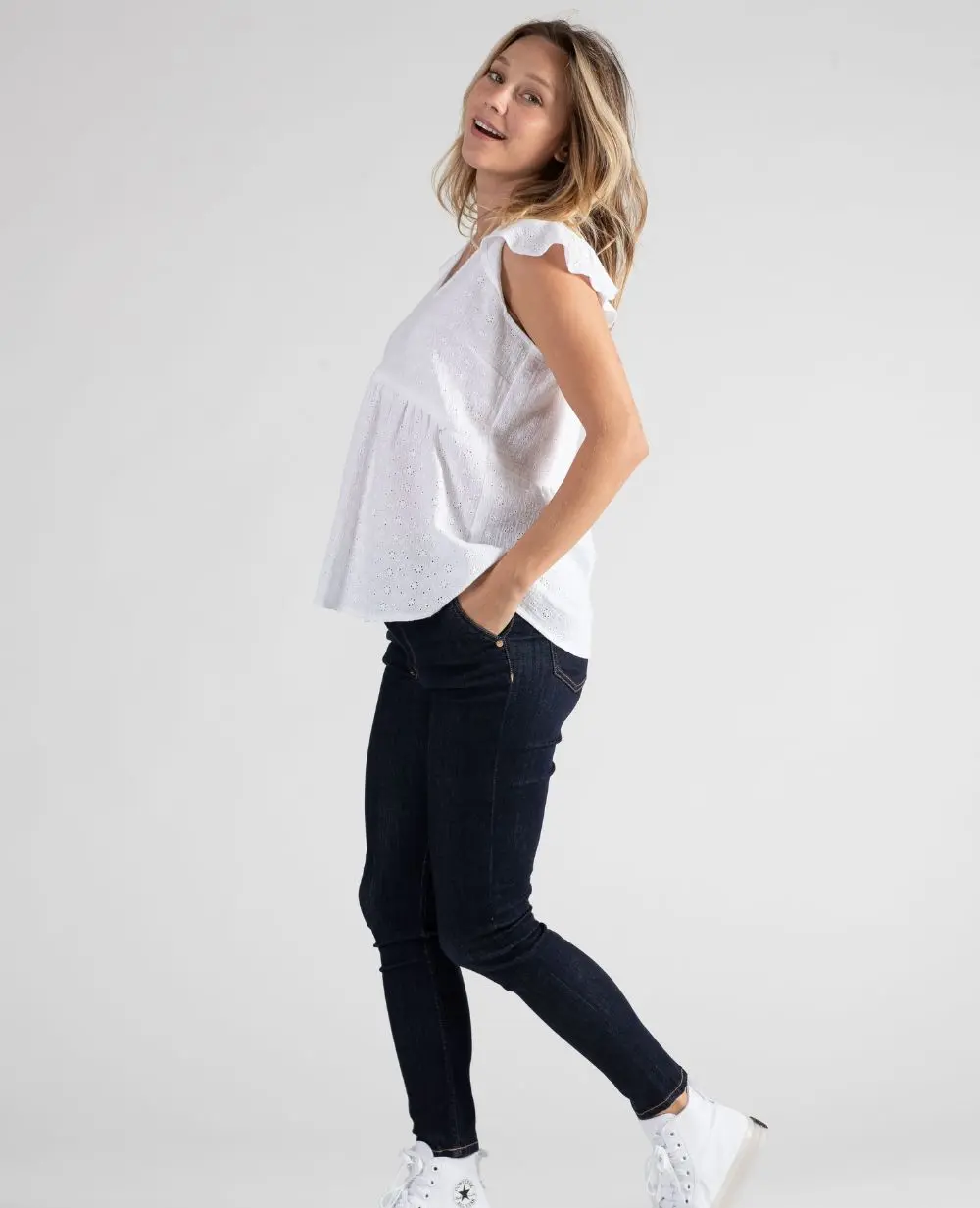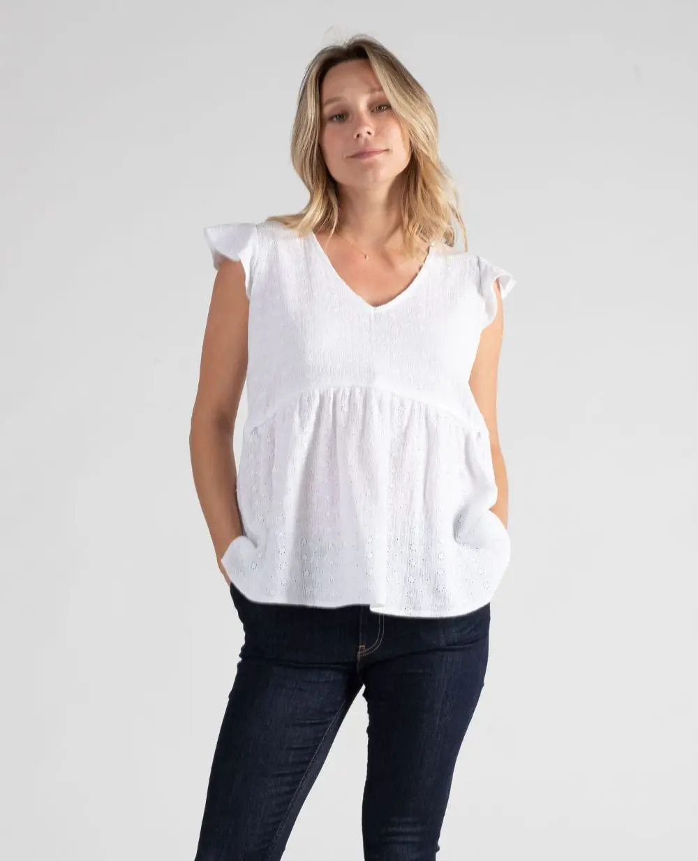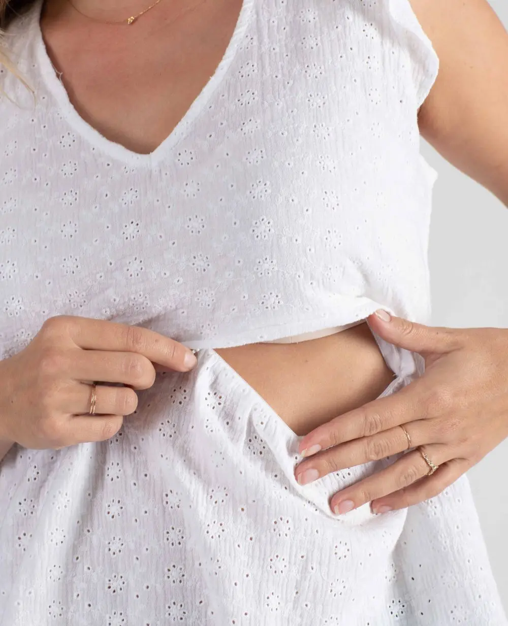 Haut papillon de grossesse et d’allaitement Suzanne – Blanc Brode