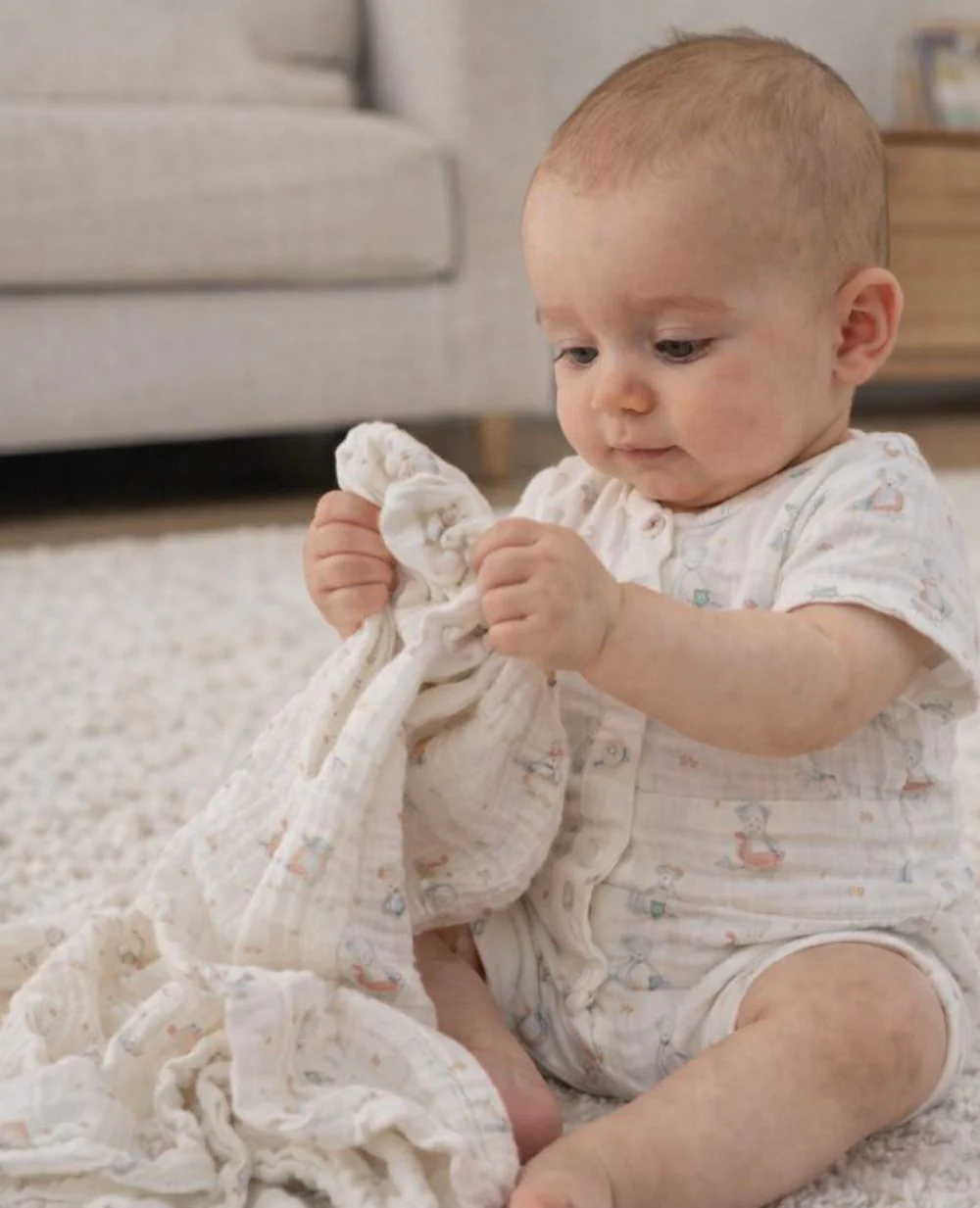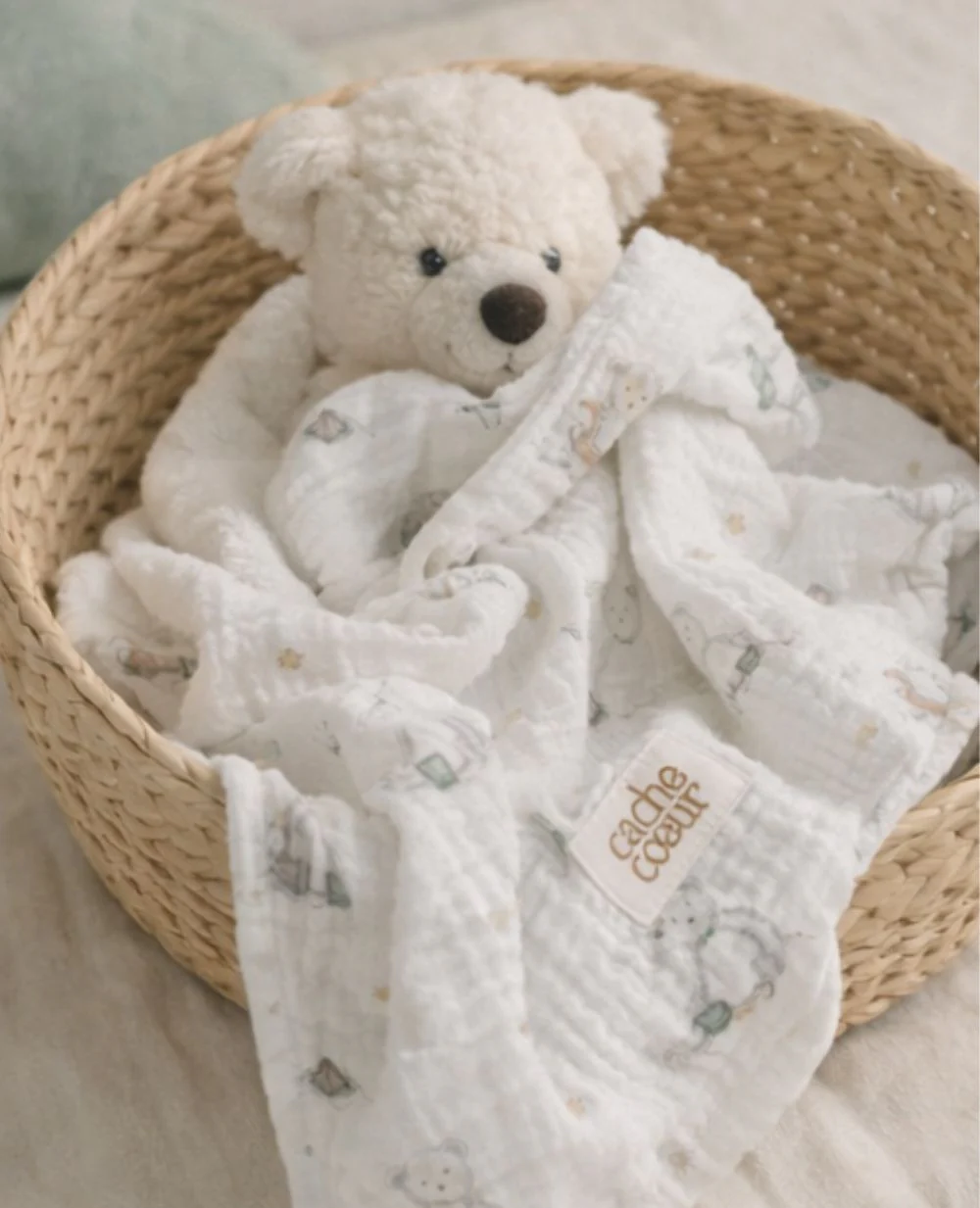 - Polyvalent : lange, doudou, bavoir, couverture légère