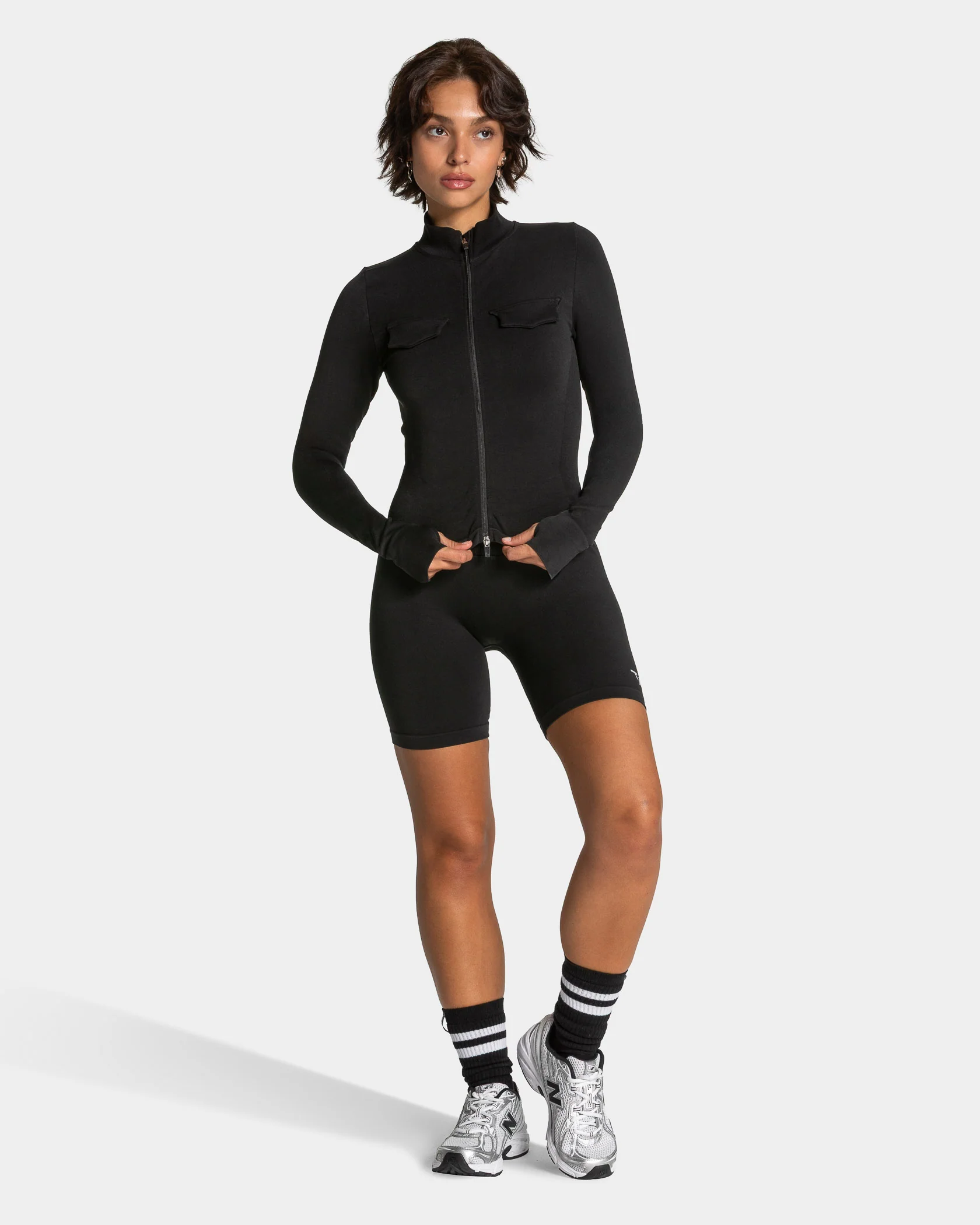 Die Lift Cargo Zip Jacke in Schwarz lässt sich optimal mit den anderen Pieces der Lift Kollektion kombinieren.