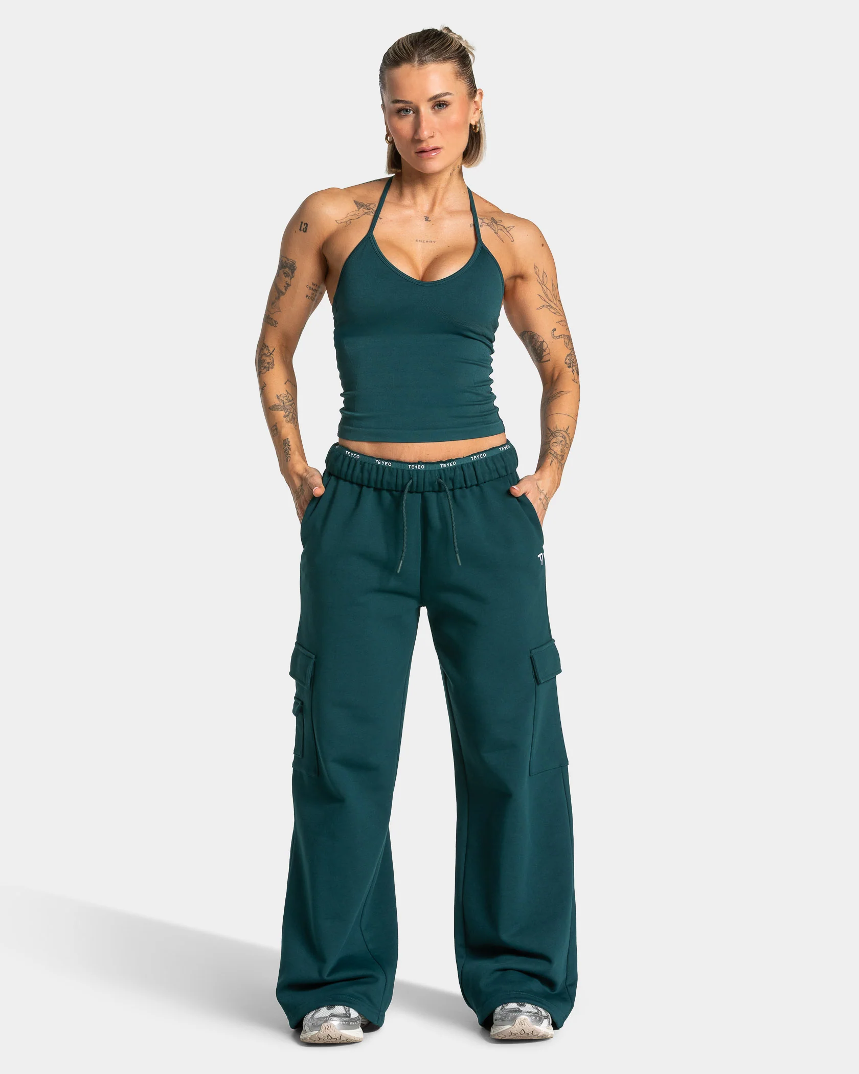 Die Lift Wide Leg Cargo Jogger in Teal lässt sich optimal mit den anderen Pieces der Lift Kollektion kombinieren.