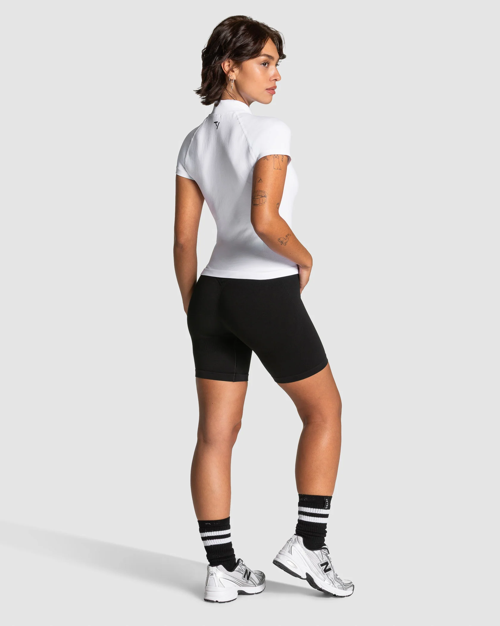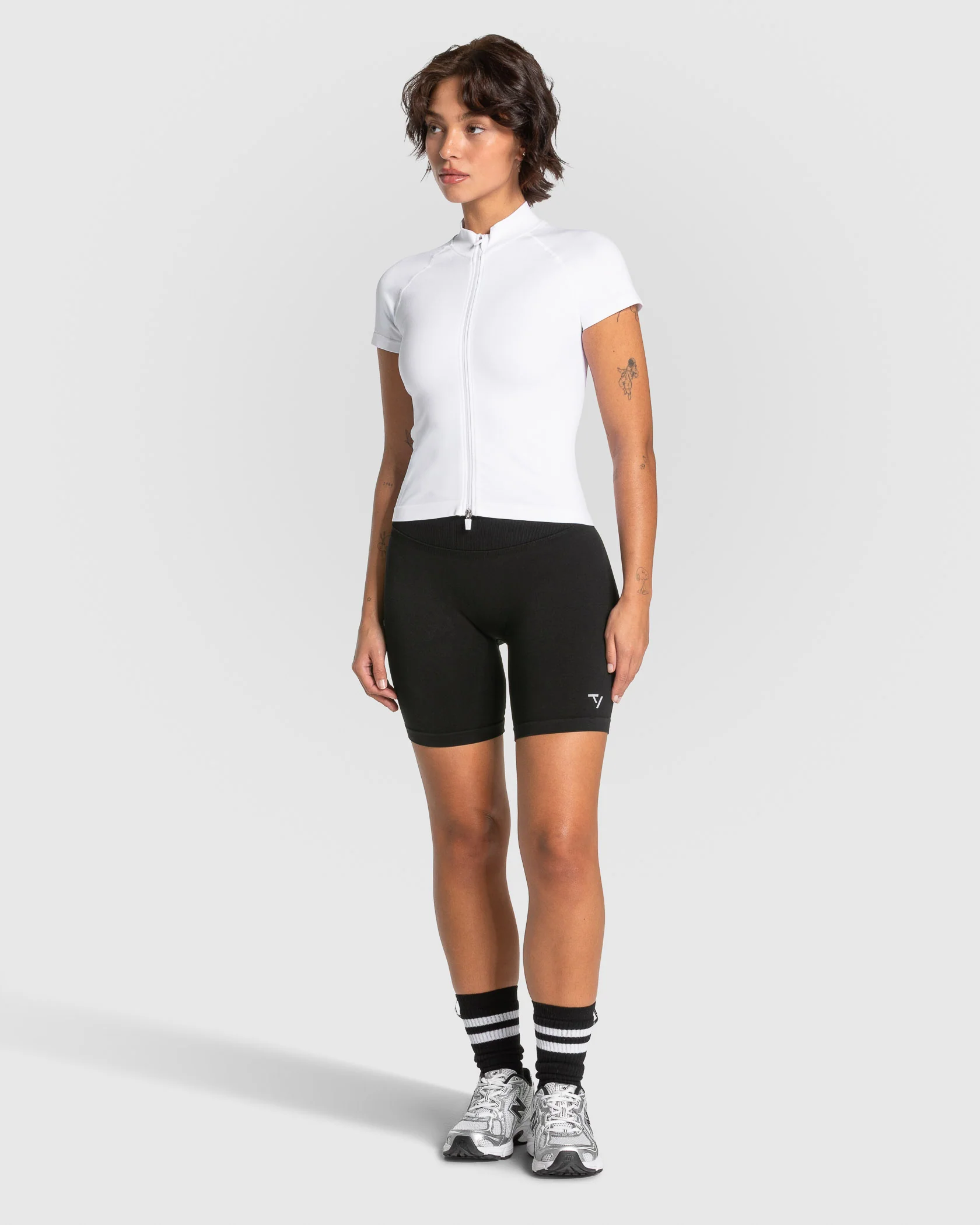 Das Lift Zip Short Sleeve in Weiß lässt sich optimal mit den anderen Pieces der Lift Kollektion kombinieren.