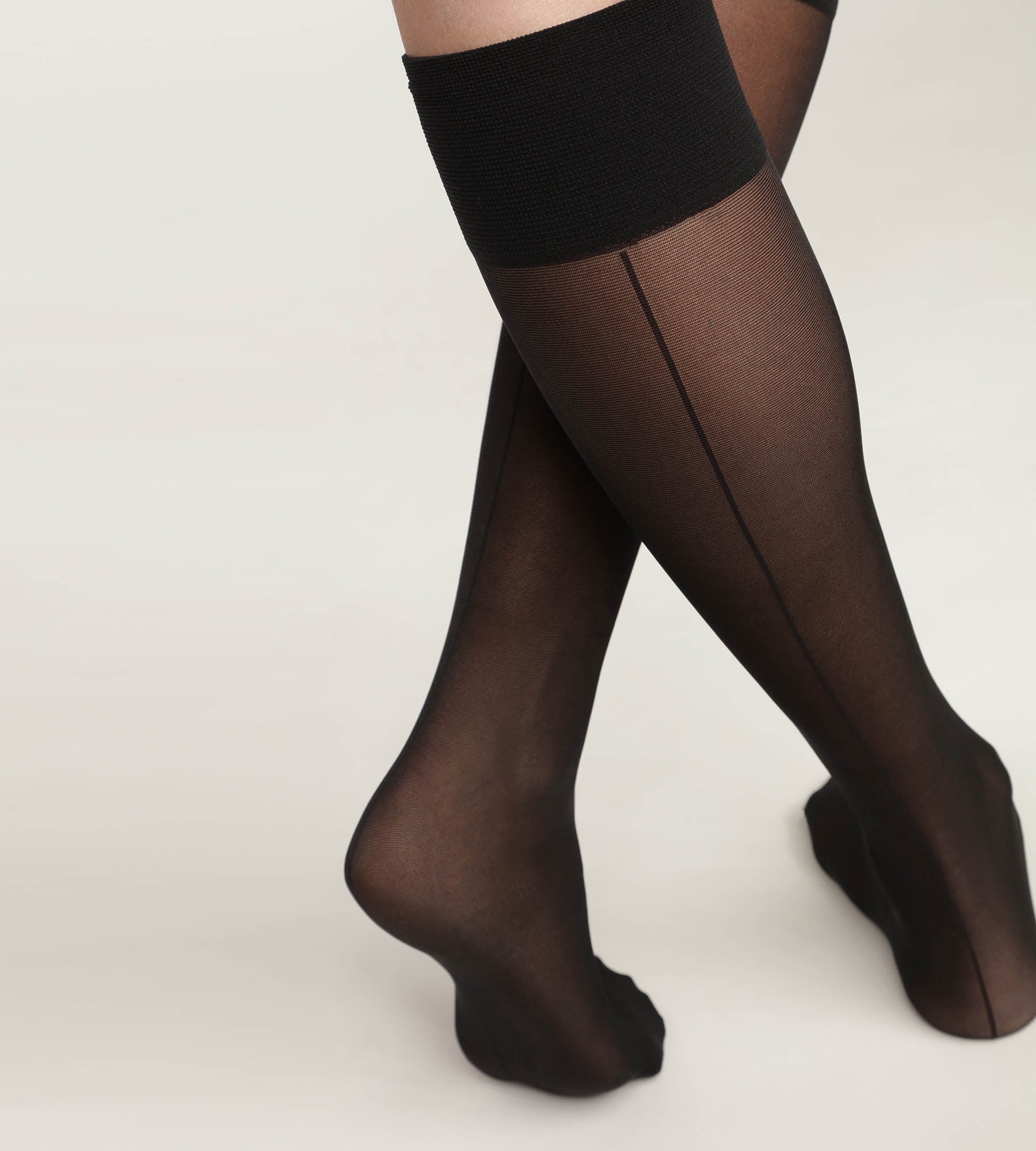 Craquez pour le style couture des mi-bas en voile Noir Dim Style au liseré vertical élégant.