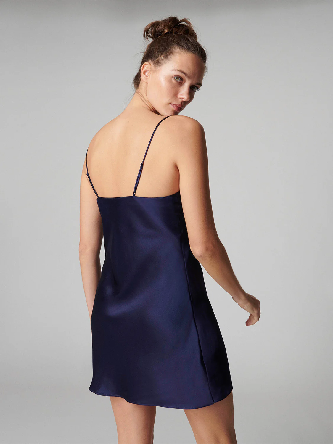 Soie délicate et coupes intemporelles, une ligne incontournable de jour comme de nuit. Nuisette courte en soie. • Décolleté en V.• Fines bretelles réglables en soie. Référence : 15B940.562