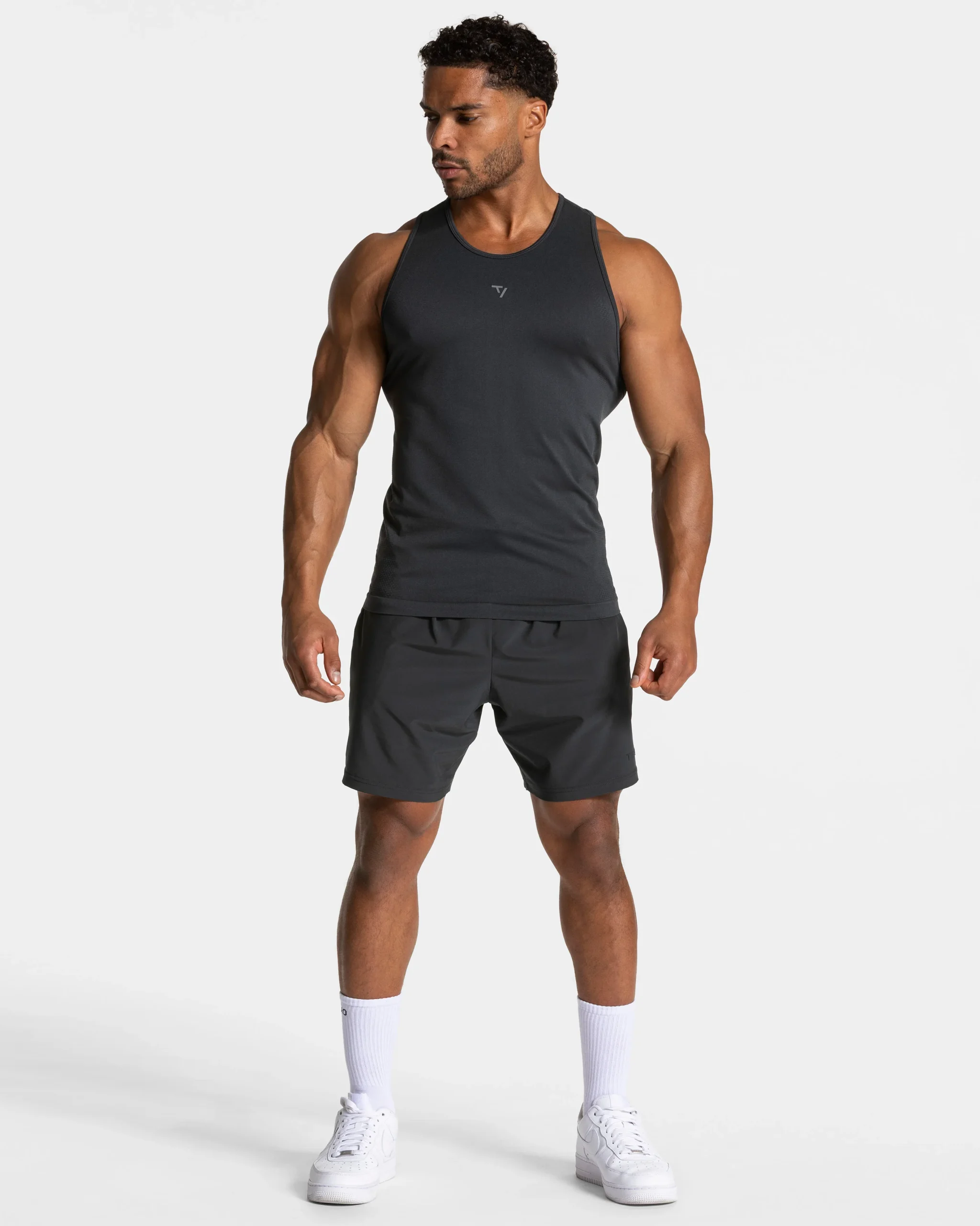 Das Pace Fitted Tank ist in mehreren Farben erhältlich und optimal mit unserer Pace Short in verschiedenen Längen kombinierbar. Hier findest du noch einmal alle Vorteile des Pace Fitted Tank in Gunmetal auf einen Blick: