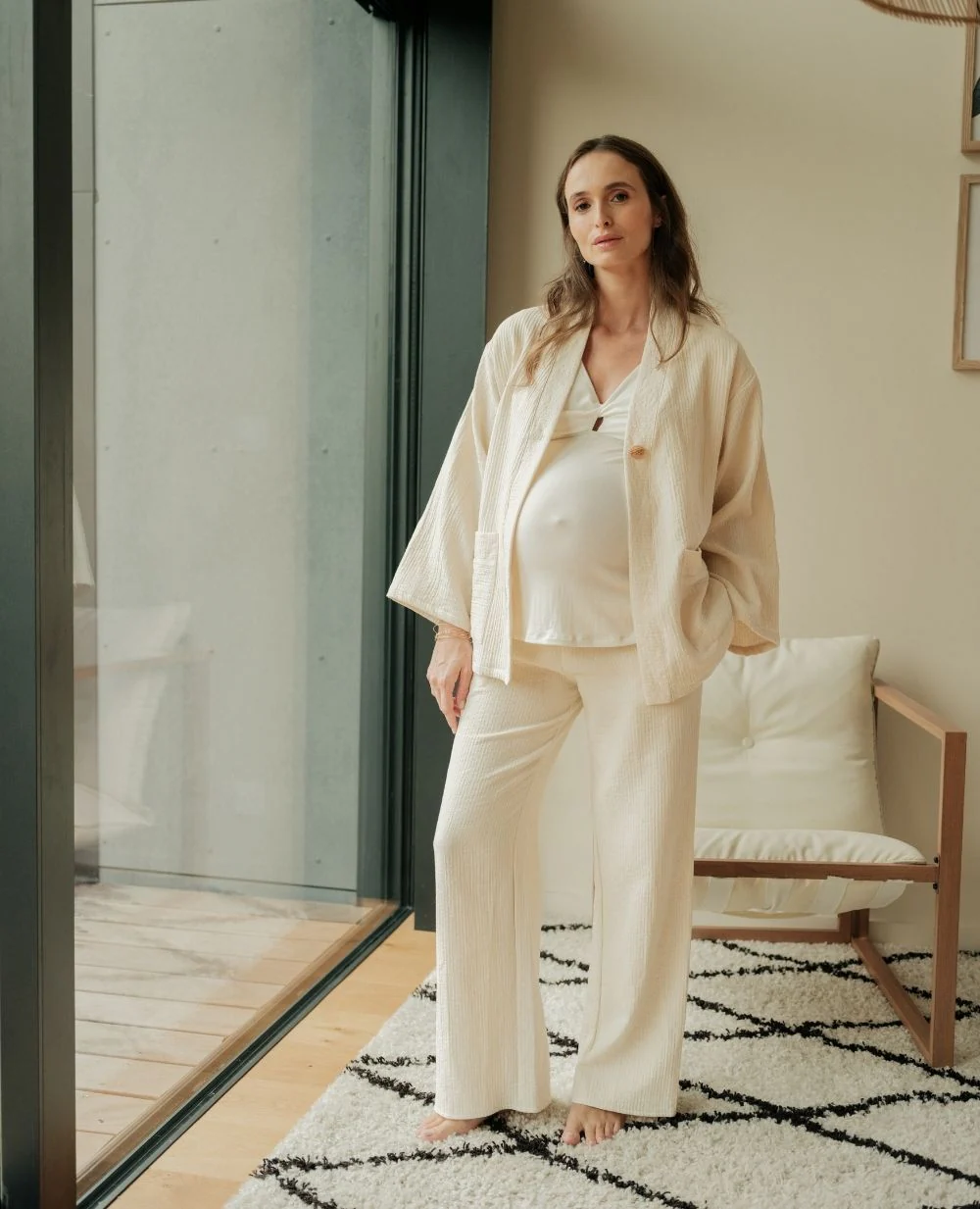 La ligne Célia incarne l’esthétique minimaliste contemporaine revisitée avec douceur : des formes larges et épurées, une sophistication zen pensée pour la future maman. Les coupes amples offrent une liberté de mouvement absolue tandis que le coton bio garantit un confort naturel et respirant. Une collection épurée et intemporelle pour vivre votre maternité en toute sérénité.