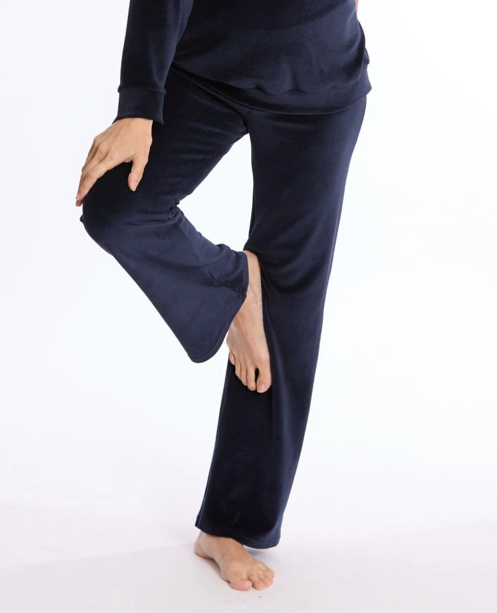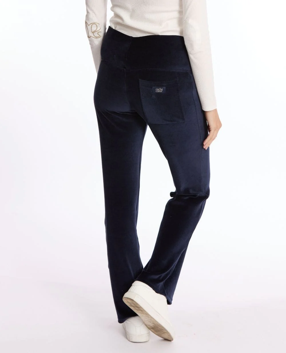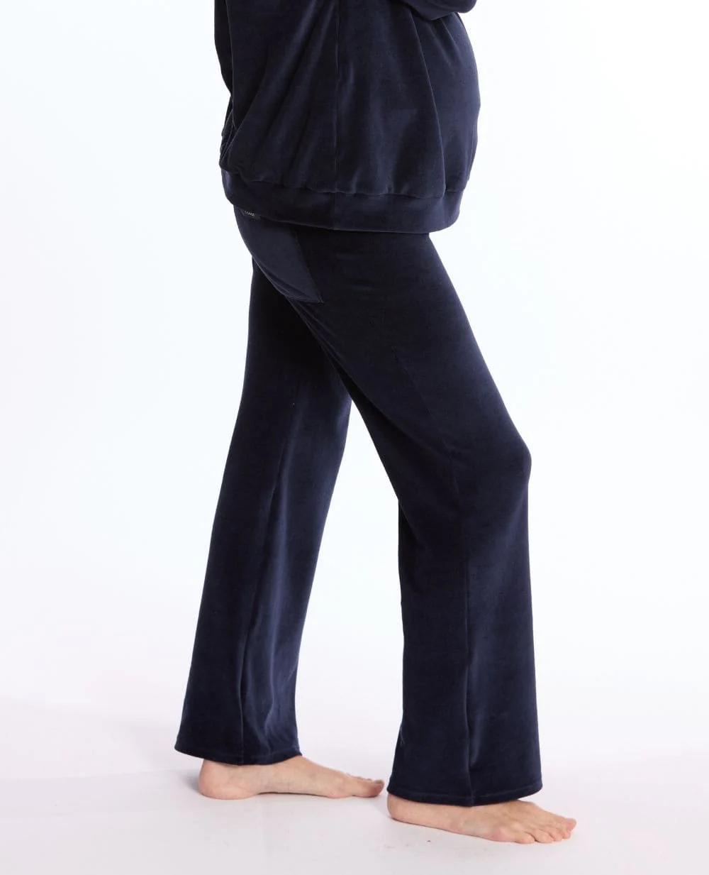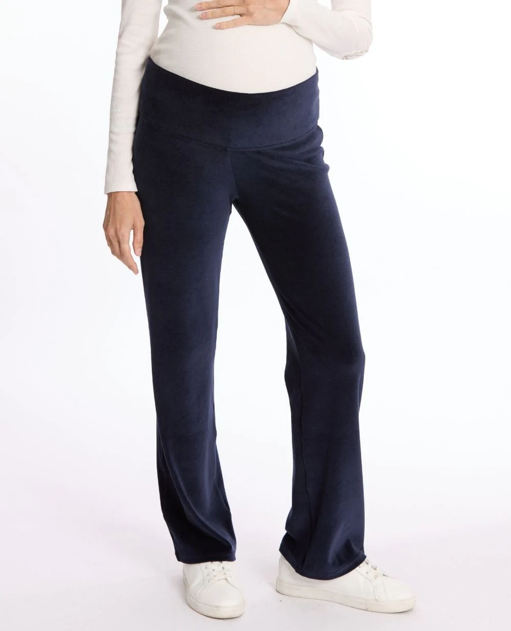 Le pantalon de maternité Enzo Marine allie douceur et confort grâce à son coton de velours italien et sa coupe large.