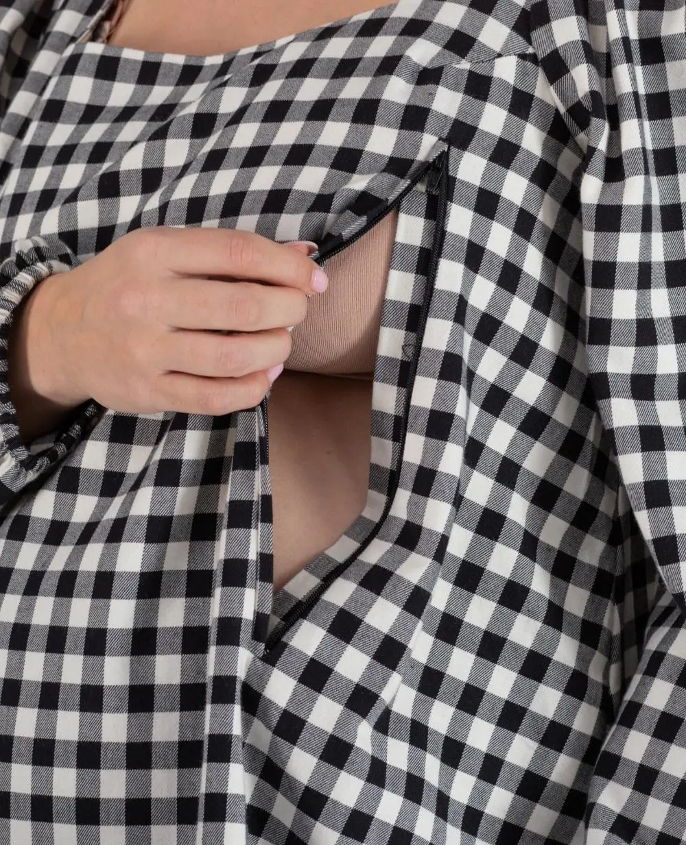 Robe courte de grossesse et d’allaitement Patti – Noir / Blanc