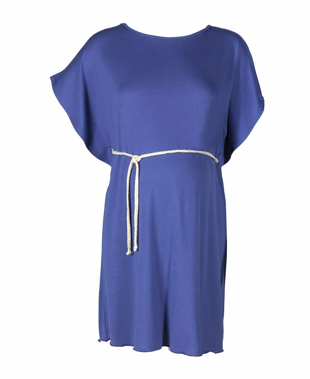 La robe de plage de grossesse Beachwear indigo allie confort absolu et élégance grâce à son jersey uni ultra doux et sa ceinture pailletée ajustable.