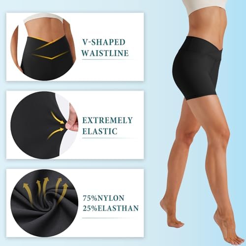 Short de Cyclisme pour Femmes: Shorts de Gym Taille Haute avec Poches – Idéaux pour Entraînement, Course, Sport