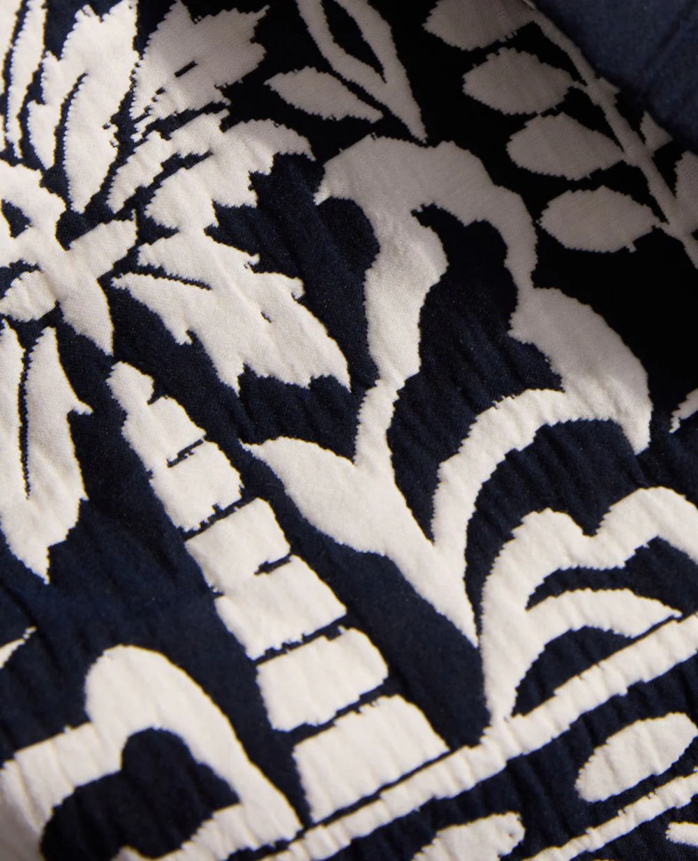 - Motif d’inspiration ethnique : bleu marine et blanc chic et intemporel