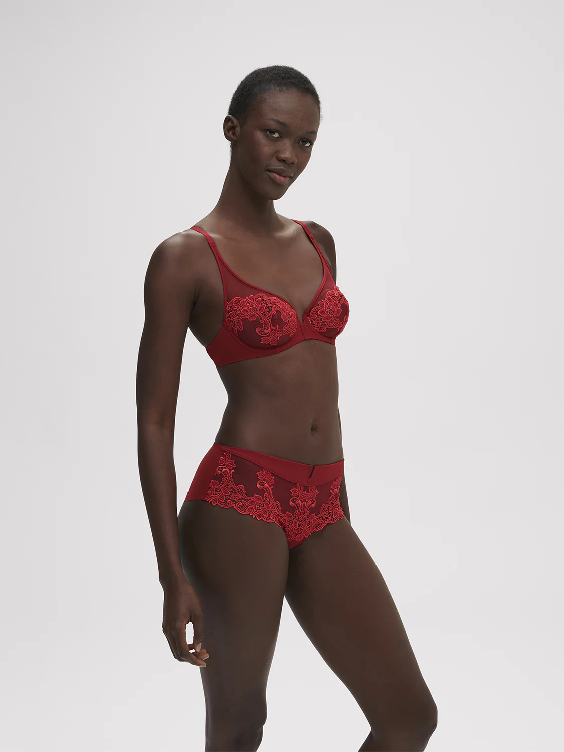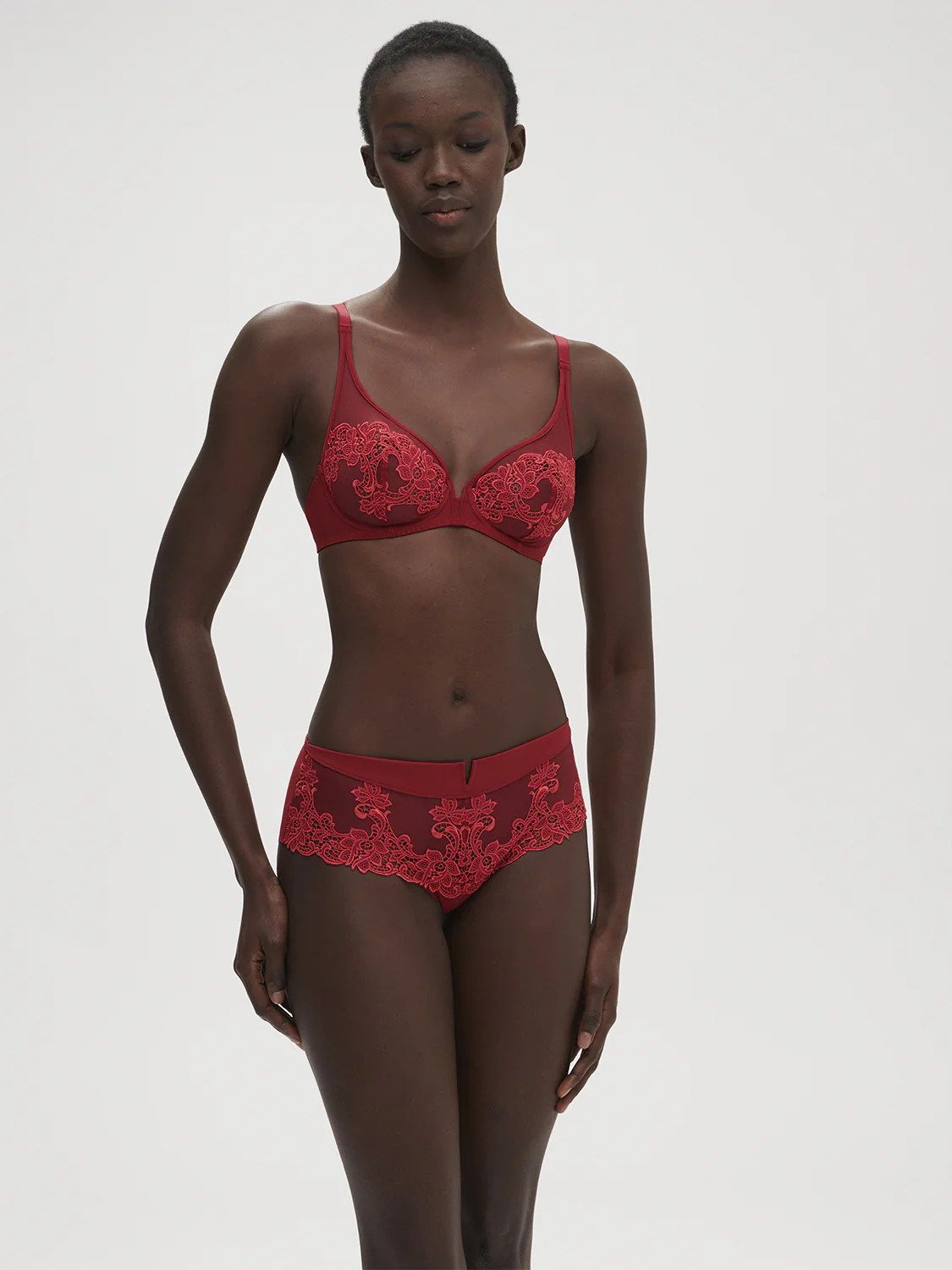 Ligne élégante où broderie et guipure se mêlent à la légèreté du tulle. Glamour et raffinée. Shorty en broderie guipure et maille. • Dos en maille opaque finitions clean cut sans coutures pour un porter invisible. • Fond 100% coton. Référence : 15C630.459
