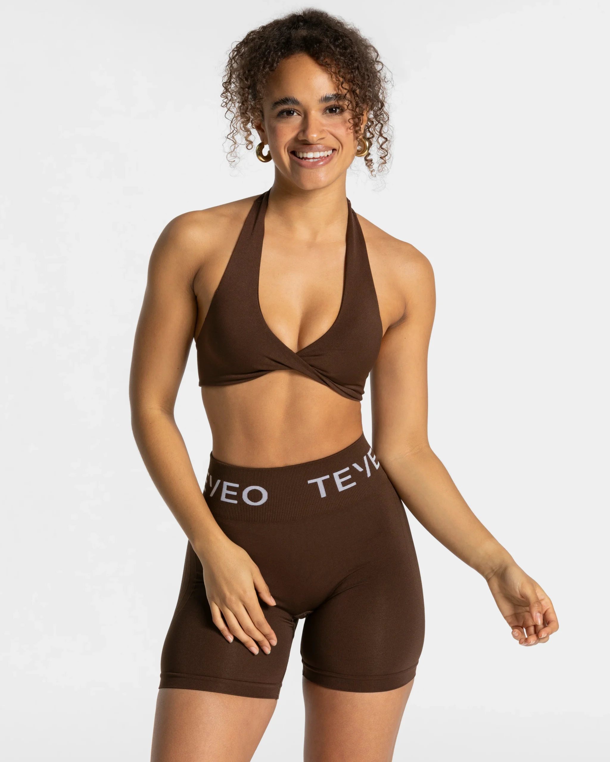 Create your Signature TEVEO Look! Unser Signature Twisted Bh in Dunkelbraun mit herausnehmbaren Pads bietet dir den optimalen Look für dein nächstes Training. Der besondere Ausschnitt zaubert dir ein schönes Dekolleté und bietet festen Halt.