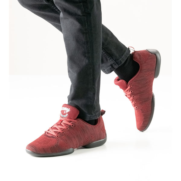 Baskets de danse homme bi-semelles, légères et souples, idéales pour les entrainements et perfectionnements des différentes danses Matière : tricot maillage mesh – semelle en polyuréthane Couleurs : rouge/noir Talon : 1 cm Pointures : 2 (34), 2.5 (34-2/3), 3 (35-1/3), 3.5 (36), 4 (36-2/3), 4.5 (37-1/3), 5 (38), 5.5 (38-2/3), 6 (39-1/3), 6.5 (40), 7 (40-2/3), 7.5 (41-1/3), 8 (42)