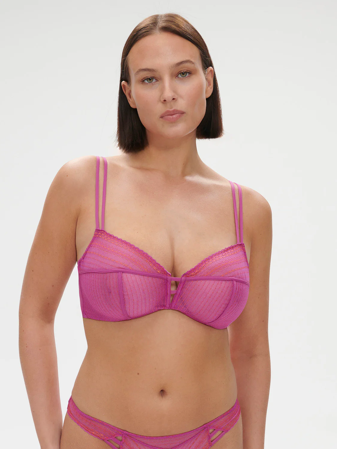 Soutien-gorge en dentelle avec armatures cachées. • Bonnets tout dentelle avec bandes graphiques.• Avec armatures, sans coques.• Bretelles réglables. Référence : 1D6309.467