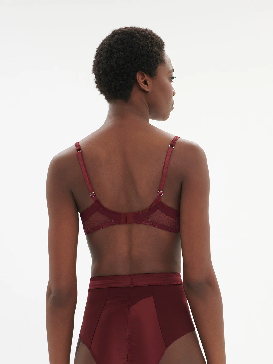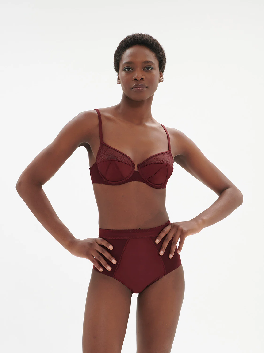 Soutien-gorge avec armatures en satin et dentelle recyclée.