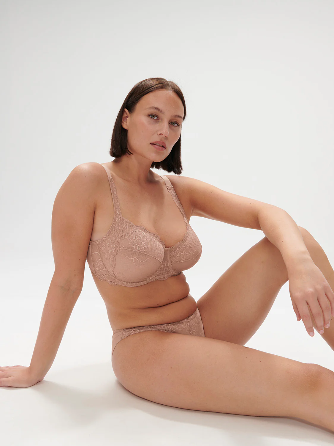 Une dentelle raffinée où les fleurs se mélangent à une modernité graphique. Elégante et féminine. Soutien-gorge en dentelle avec armatures. • Forme emboîtante. • Décolleté carré.• Galbe rond, poitrine recentrée et canalisée.• Excellent maintien. • Bas et côtés bonnets doublés de tulle pour un meilleur maintien. • Avec armatures, sans coques.• Bretelles réglables. Référence : […]