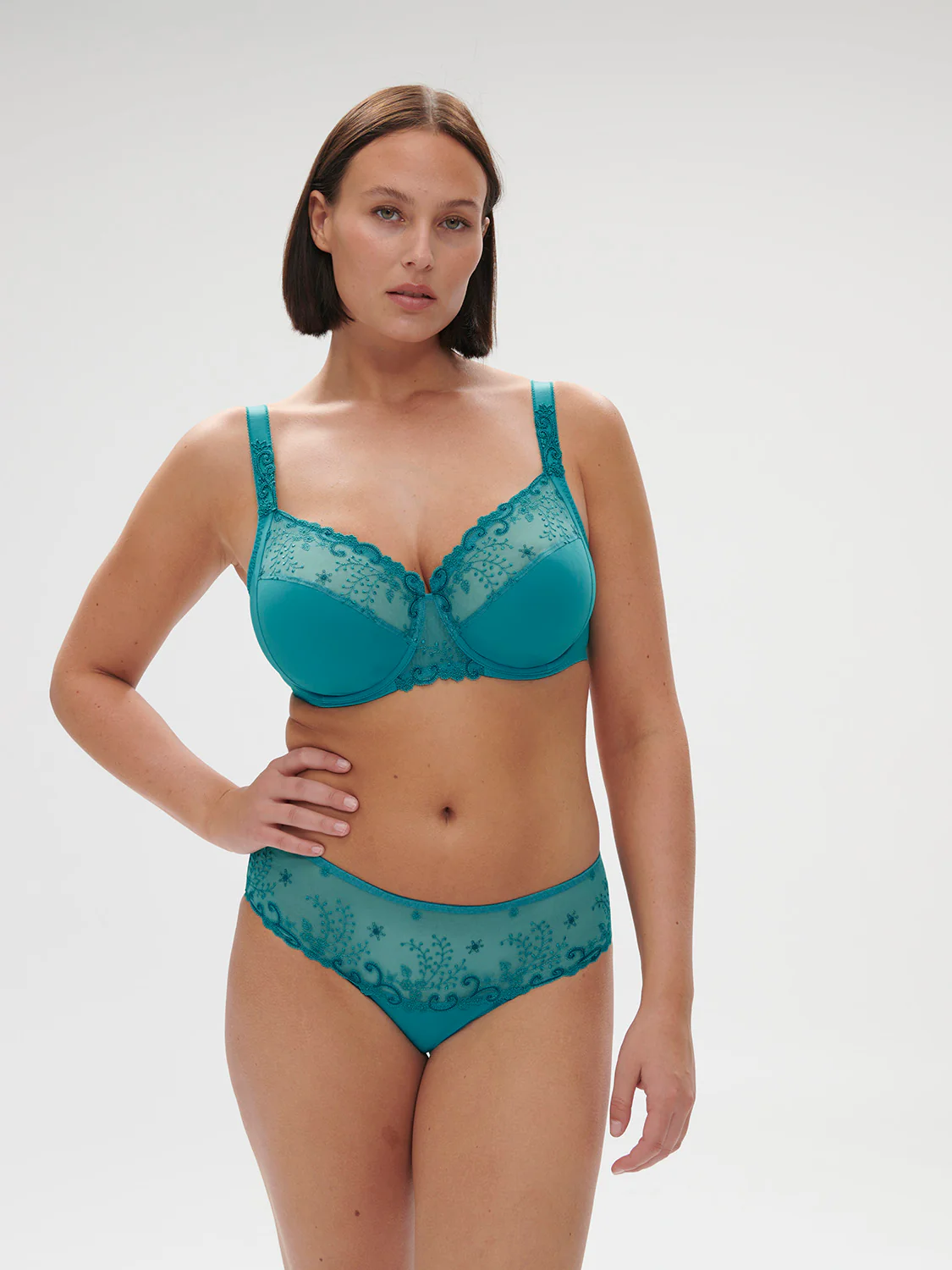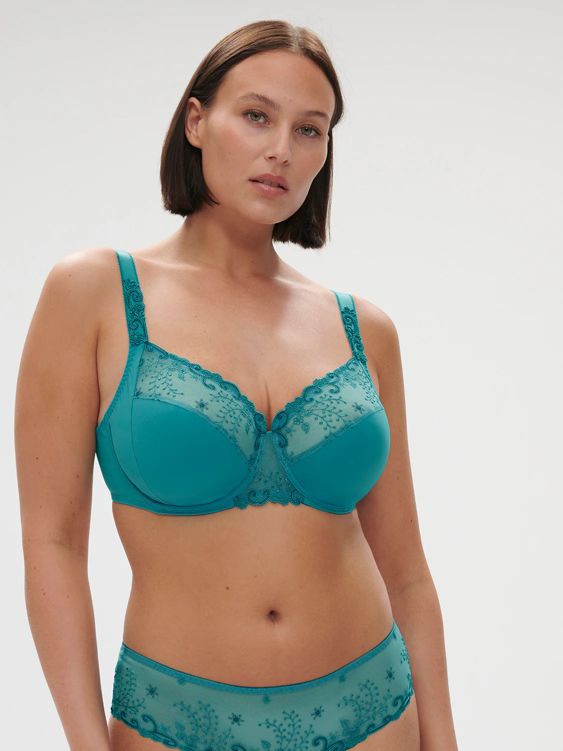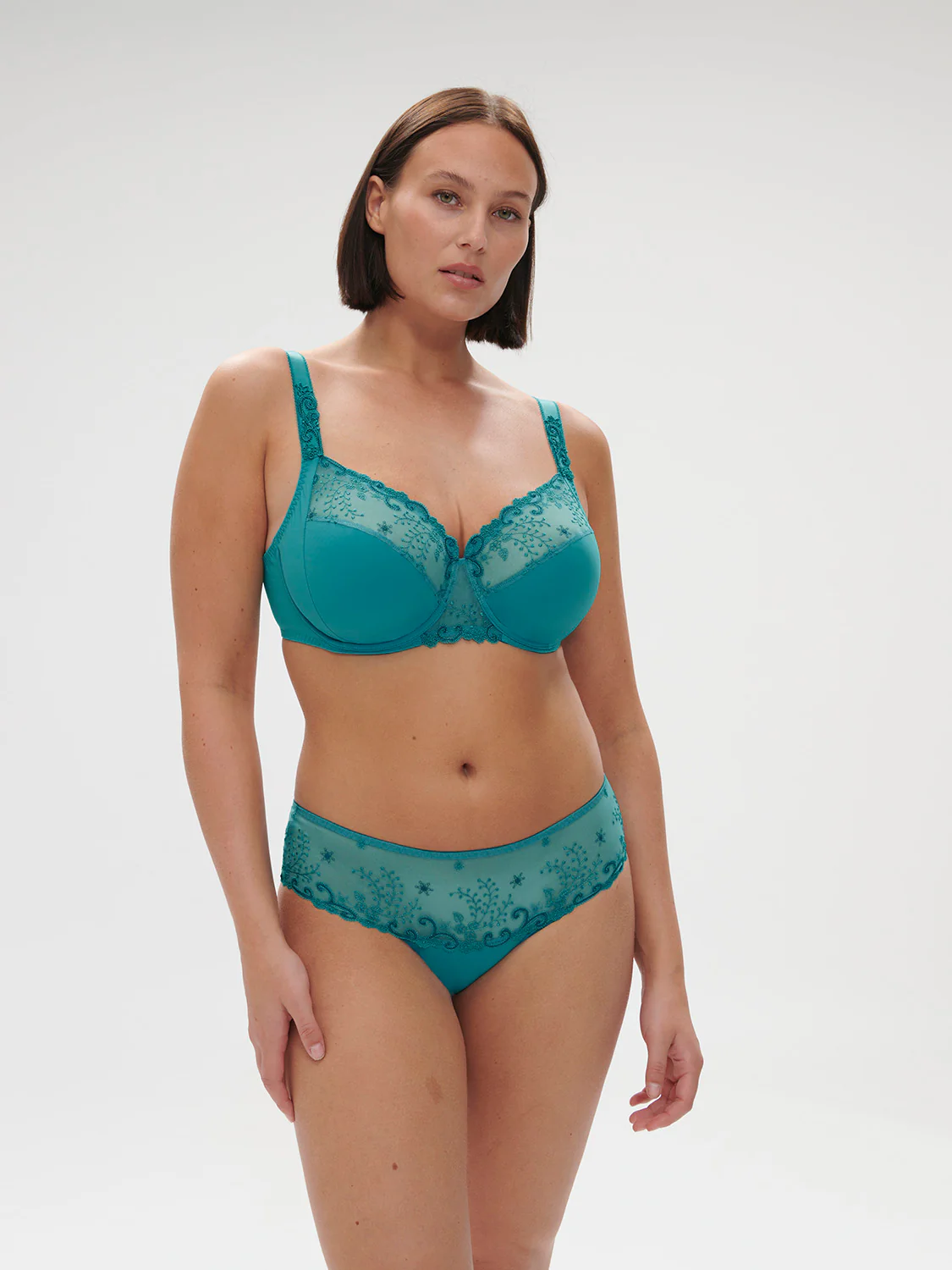 Une broderie florale, sublimée par de délicats motifs en guipure. Emblématique et romantique. Soutien-gorge emboitant en maille et broderie avec armatures. • Forme emboîtante. • Galbe rond, poitrine recentrée.• Excellent maintien.• Bas bonnets doublés coton pour plus de confort et d’opacité.• Avec armatures, sans coques.• Bretelles réglables. Référence : 12X320.665