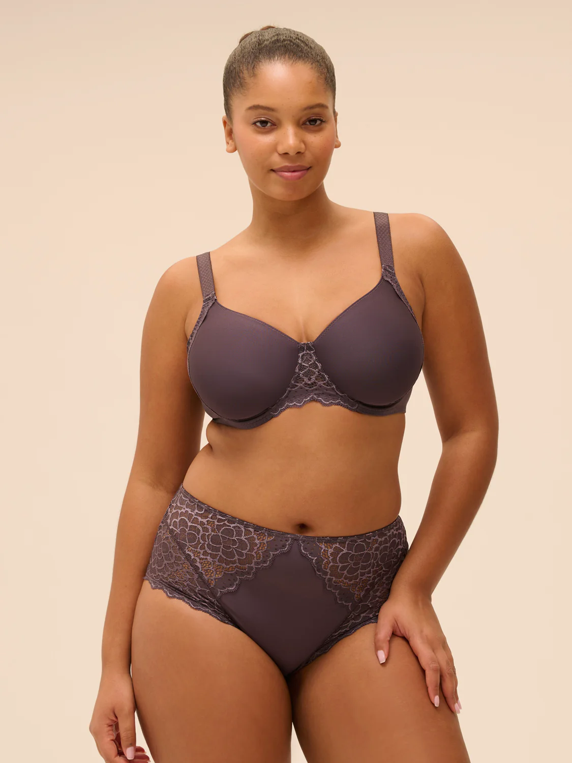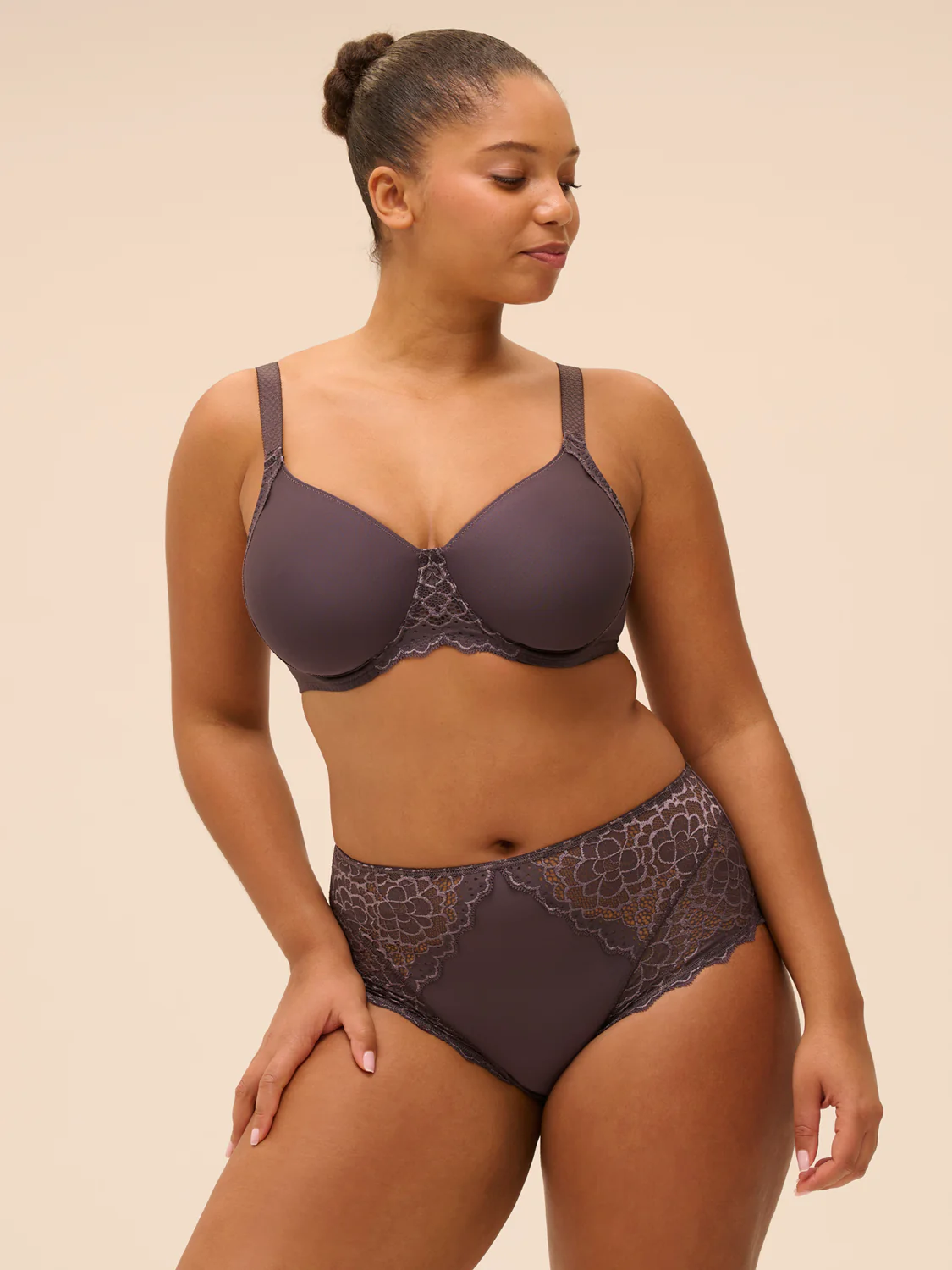 La fraîcheur de la dentelle florale et la douceur de la maille font de Caresse un incontournable. Quotidienne et intemporelle.