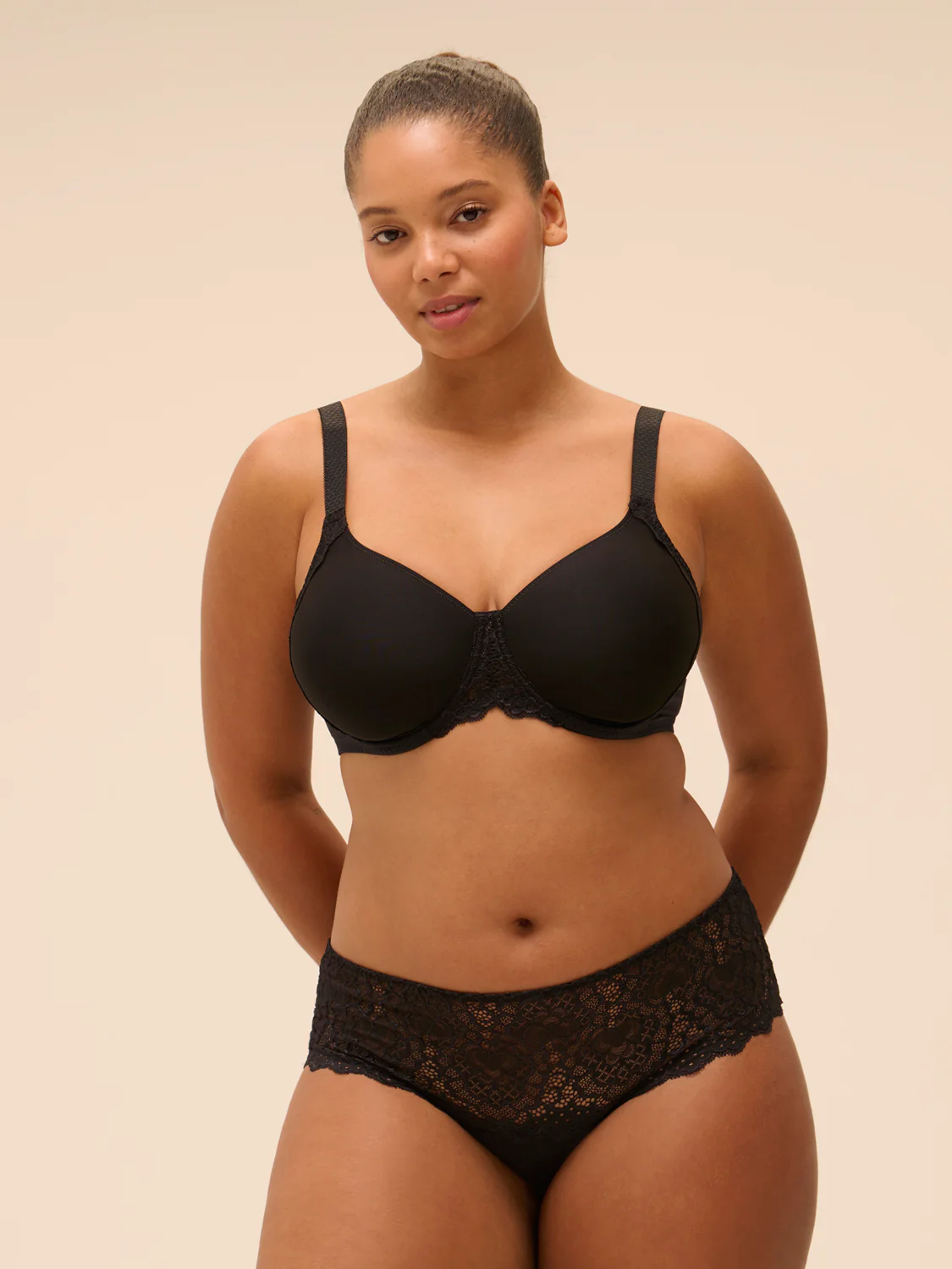 La fraîcheur de la dentelle florale et la douceur de la maille font de Caresse un incontournable. Quotidienne et intemporelle.