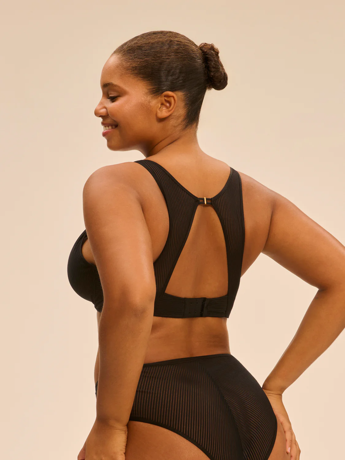 Soutien-gorge avec armatures en tulle fantaisie rayé. • Toucher ultra-doux.• Décolleté plongeant.• Dos décoré avec un jeu de découpes graphiques et un petit bijou doré.• Larges bretelles en tulle fantaisie rayé, non réglables. Référence : 1F4350.015